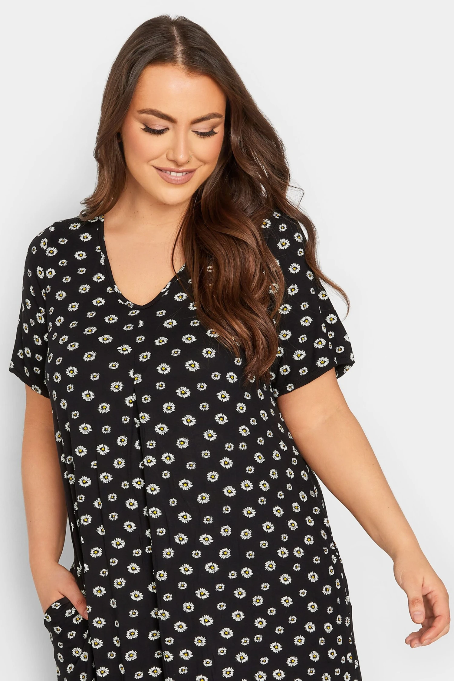 Refresh you dresses collection with this Limited Collection dress. Made from a soft jersey fabric, this plus size dress features a v-neckline, short sleeves, and a pleat front. Style with a denim jacket and sandals for a casual look you can rely on this season.