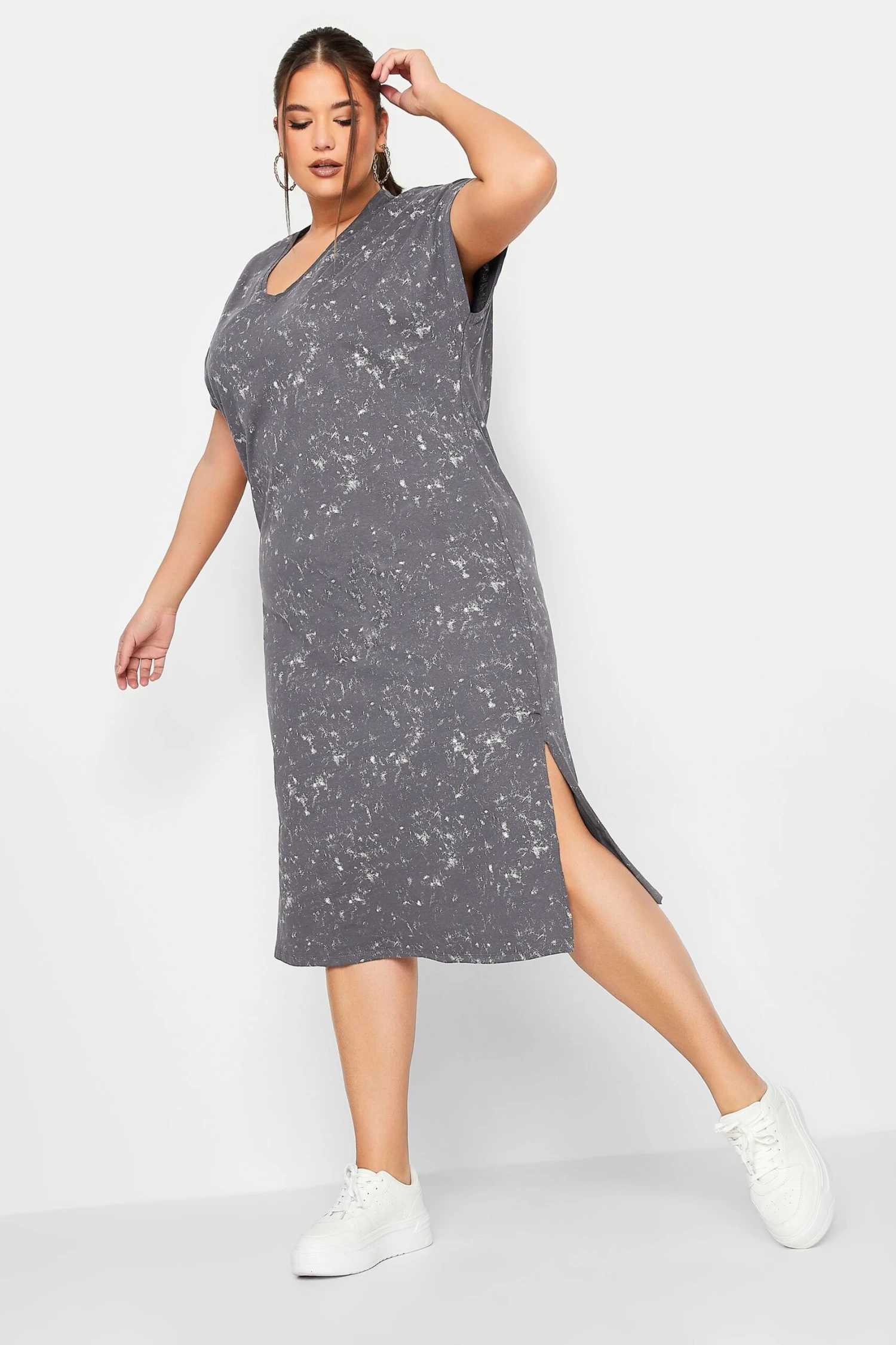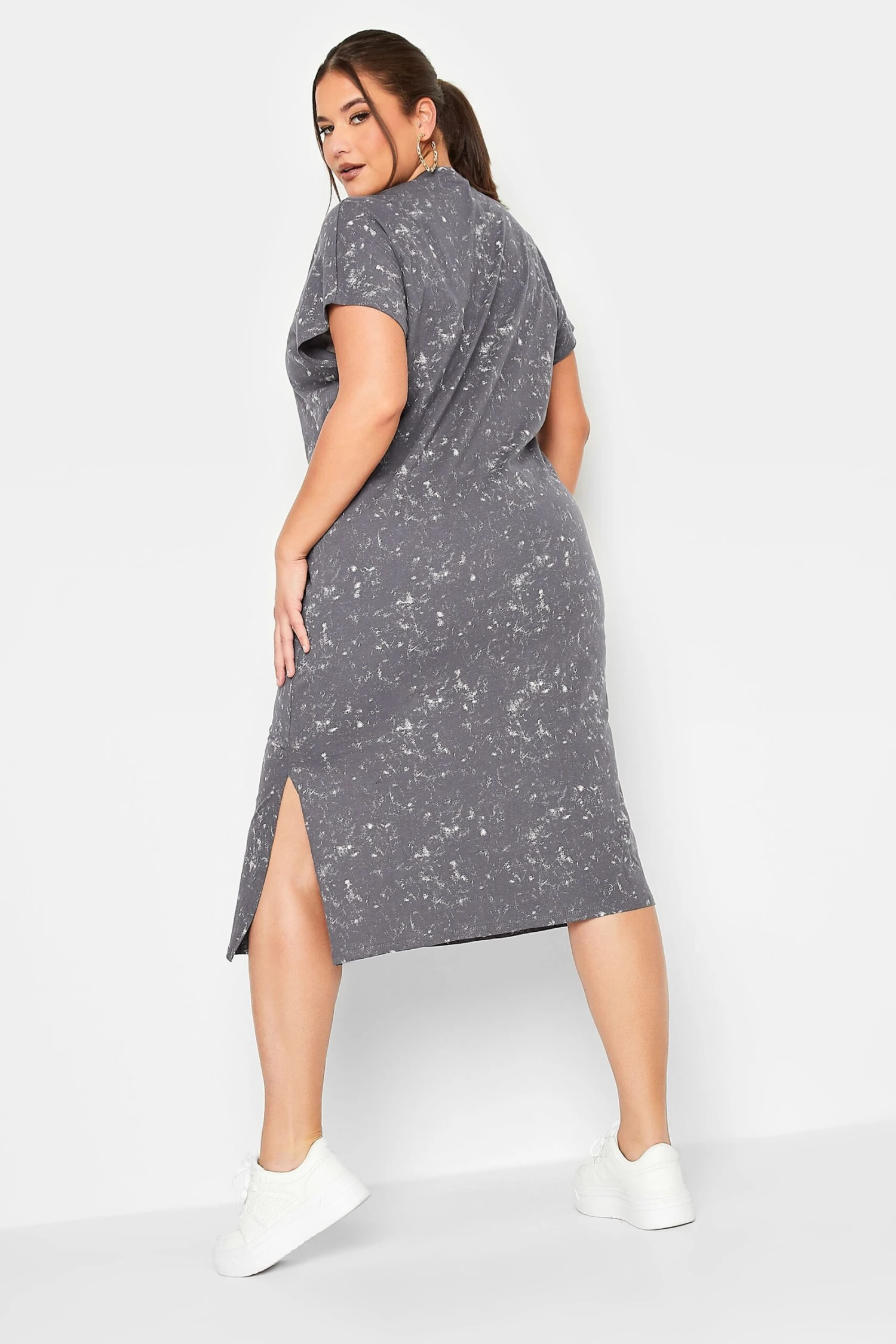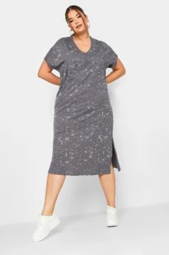 LIMITED COLLECTION Curve Grey Acid Wash Side Split T-Shirt Dress