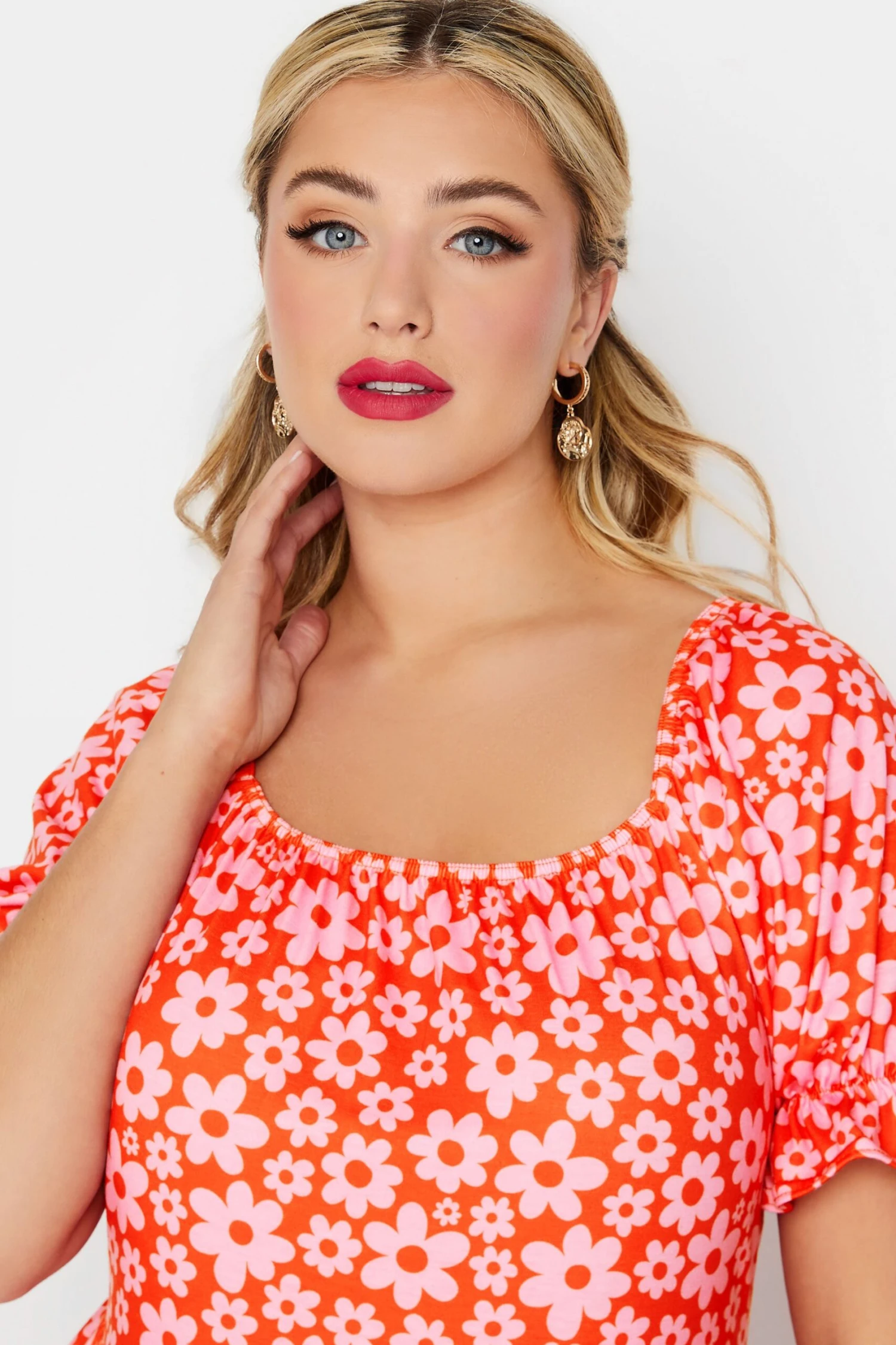 Brighten up your tops collection with this retro print floral top. Made from a comfortable jersey fabric, this top features a square neckline, a back tie detail, and short sleeves. Style with jeans and sandals for a casual Summer look.
