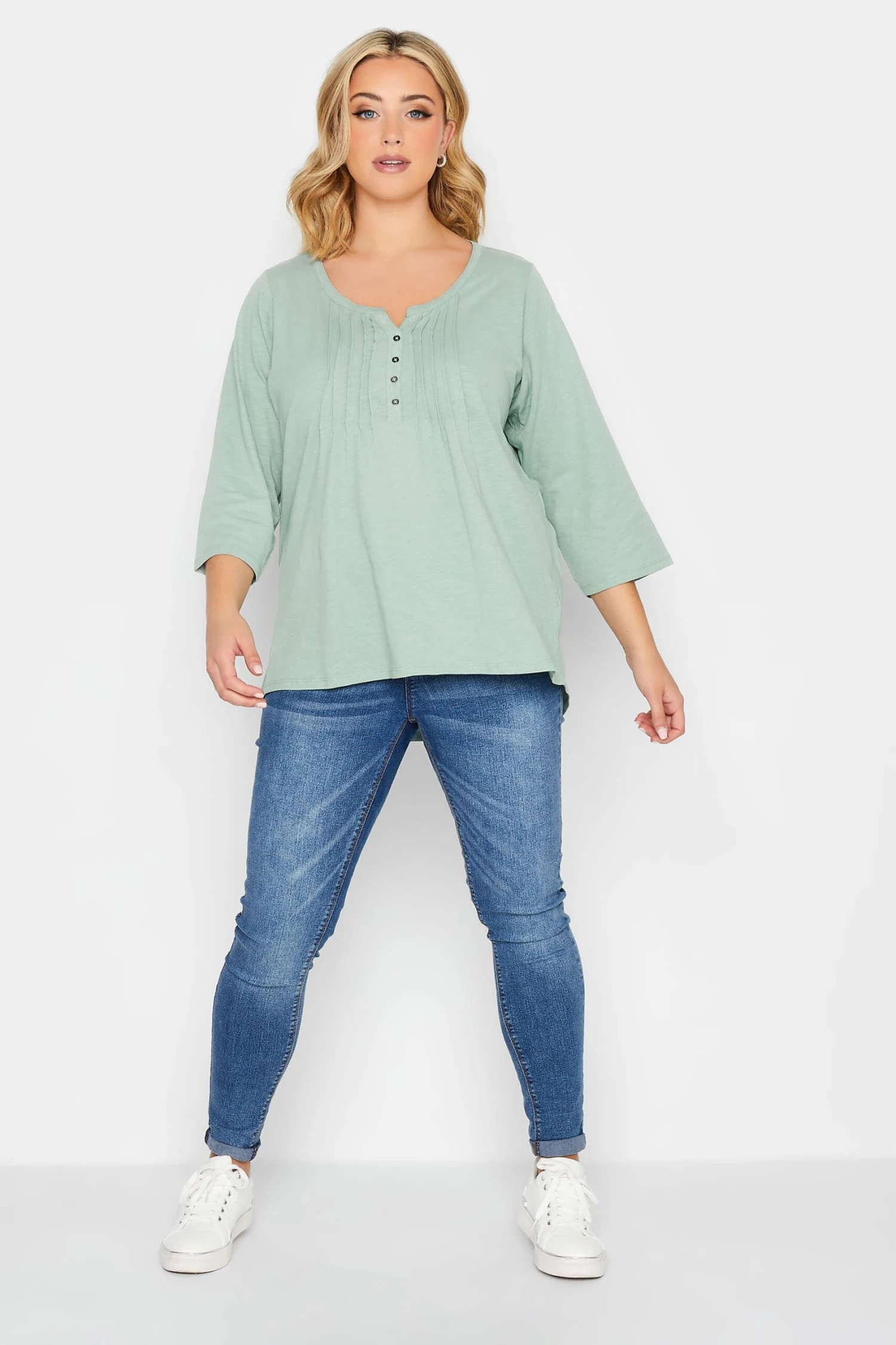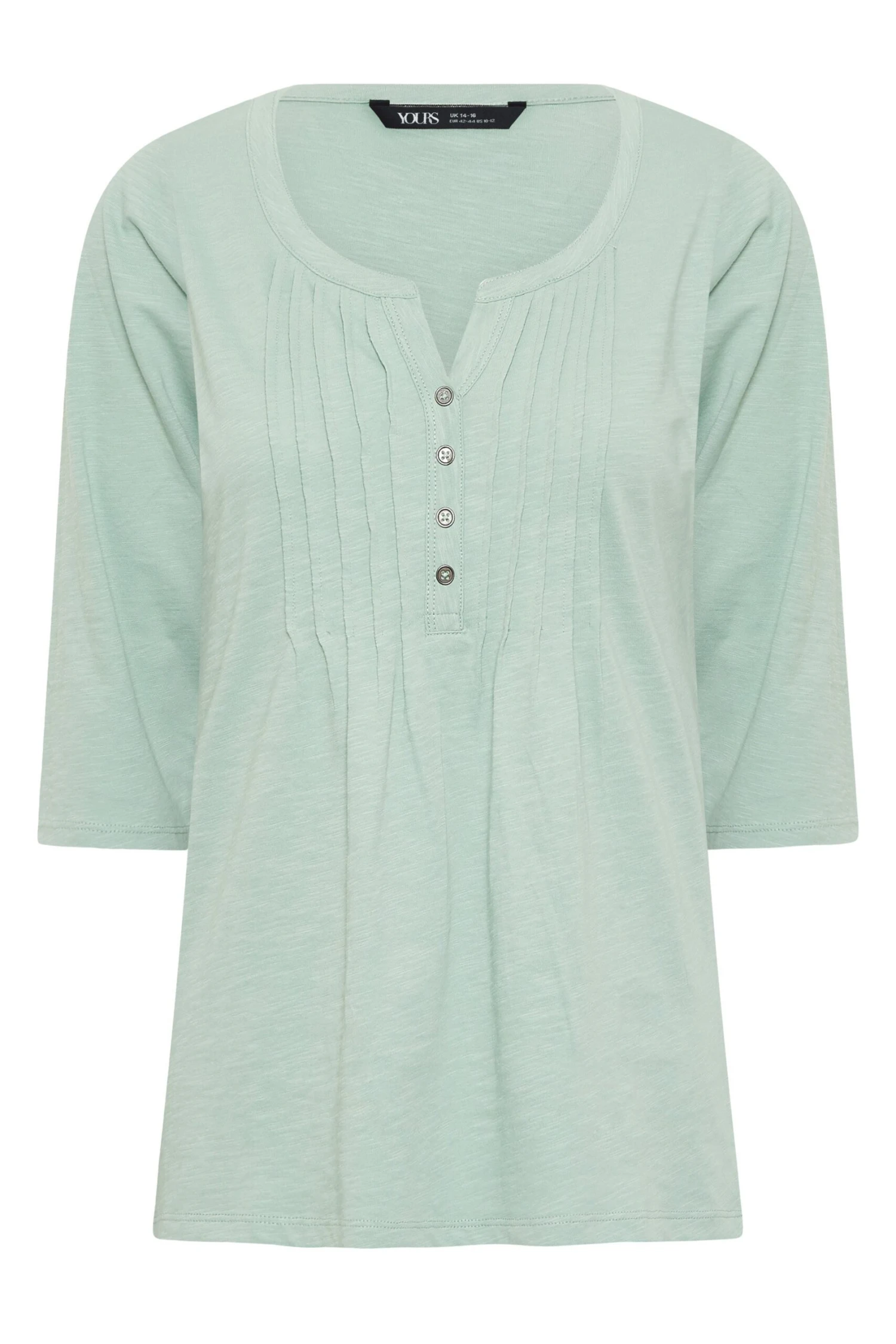 This new-in Yours Petite henley top is an essential piece for you casual collection. Made from a comfortable jersey fabric, it features a scoop neckline with 3/4 length sleeves and front pleat detail. Finish off your look with jeans and trainers.