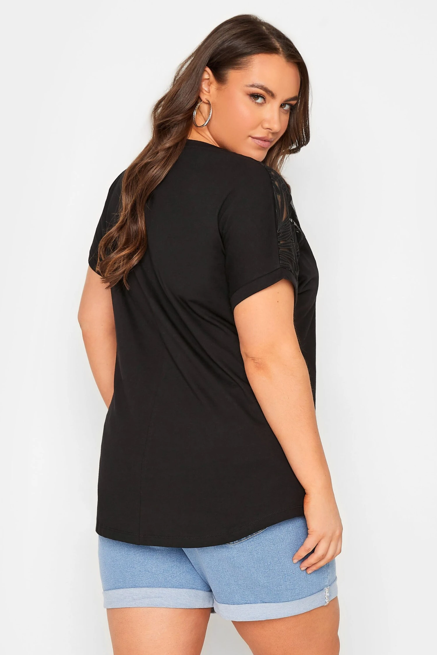 Amp up your wardrobe with this plus size floral t-shirt. Made from 100% cotton, it features a mesh panel detail, short sleeves and a scoop neckline. Pair with your favourite jeans and sandals for a stylish, everyday outfit.