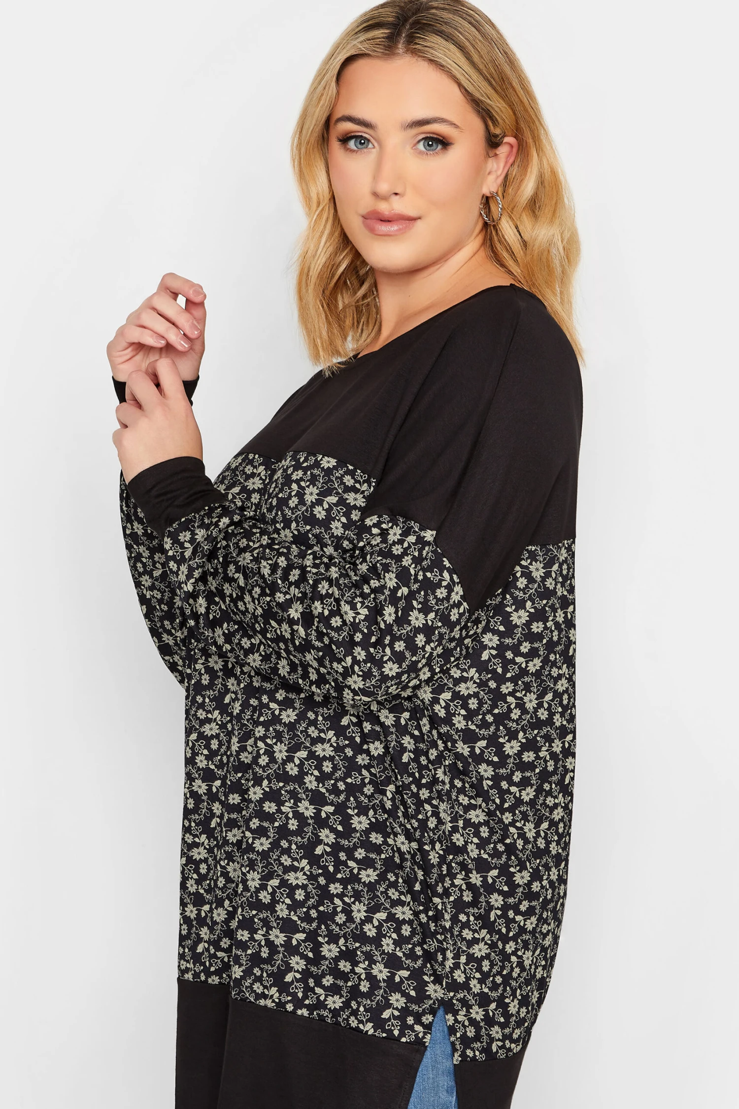 Prints are a must-have this season! Made from a stretch jersey fabric, this plus size top features long sleeves and a scoop neckline, complete in a floral print detail. Simply style with your favourite jeans and boots, layered over a leather jacket for a stylish weekend outfit.