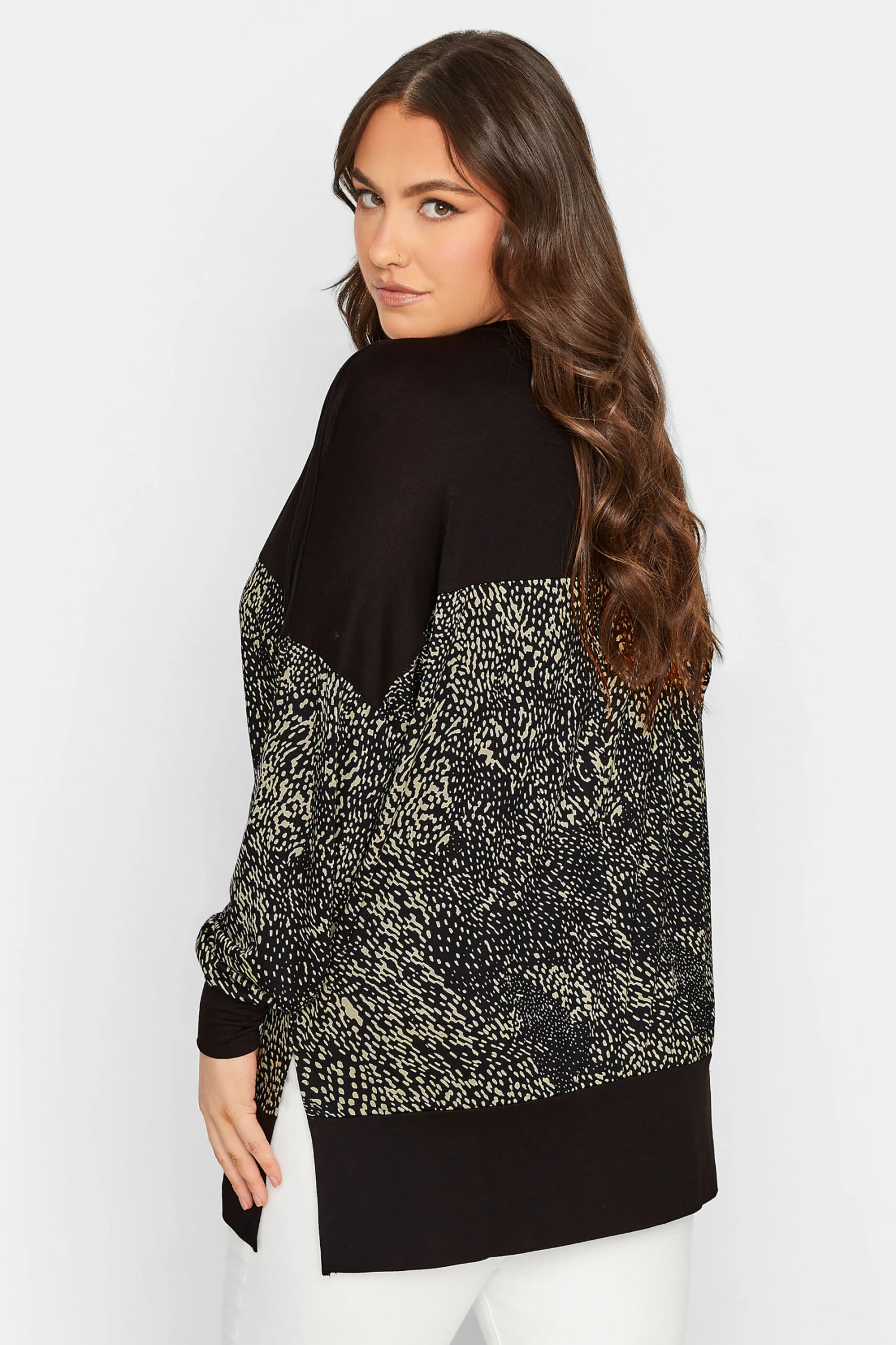 Prints are a must-have this season! Made from a stretch jersey this plus size top features long sleeves, a scoop neckline, and an animal print detail. Style with black jeans and white trainers for a stylish everyday look!