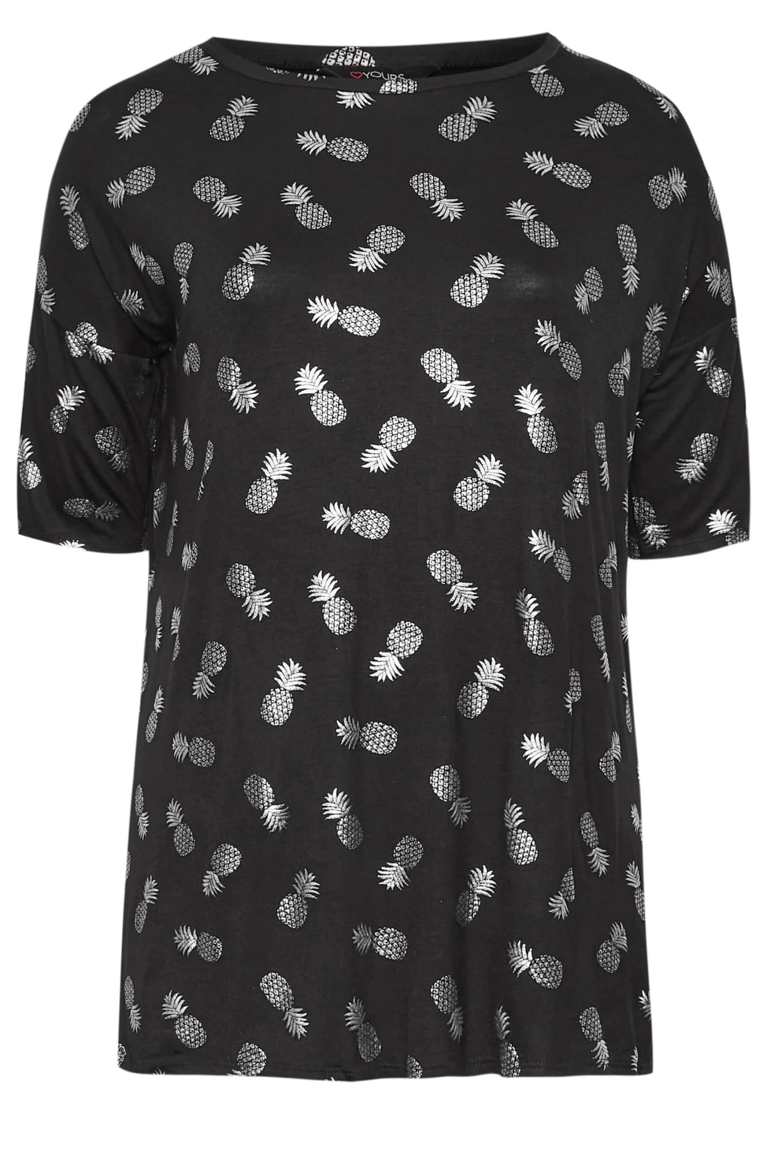 Amp up your prints collection with this new-in t-shirt. Made in a soft jersey fabric, it features a scoop neckline, short grown-on sleeves, and a foil pineapple print. Partner with jeans and trainers for a casual look.