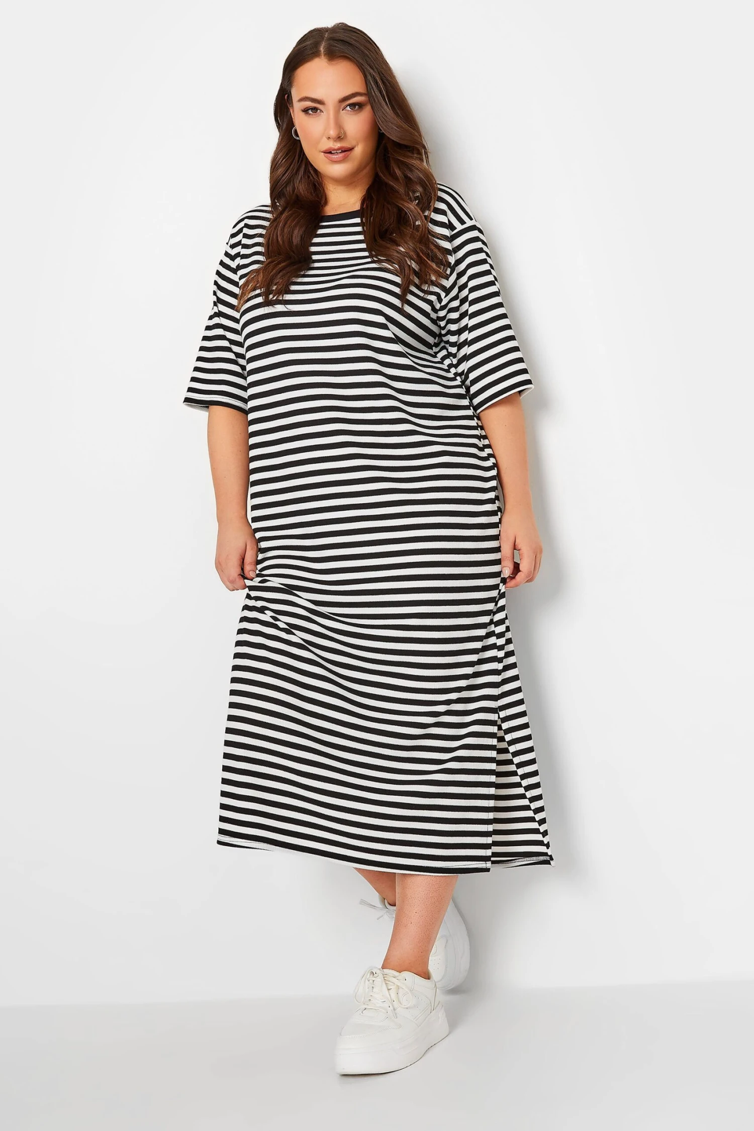 Make some room in your wardrobe for this maxi dress. Made from a comfortable jersey fabric this dress features a stripe design, 3/4 length sleeves, a scoop neckline, and a maxi length. Wear with trainers for an off-duty weekend look.