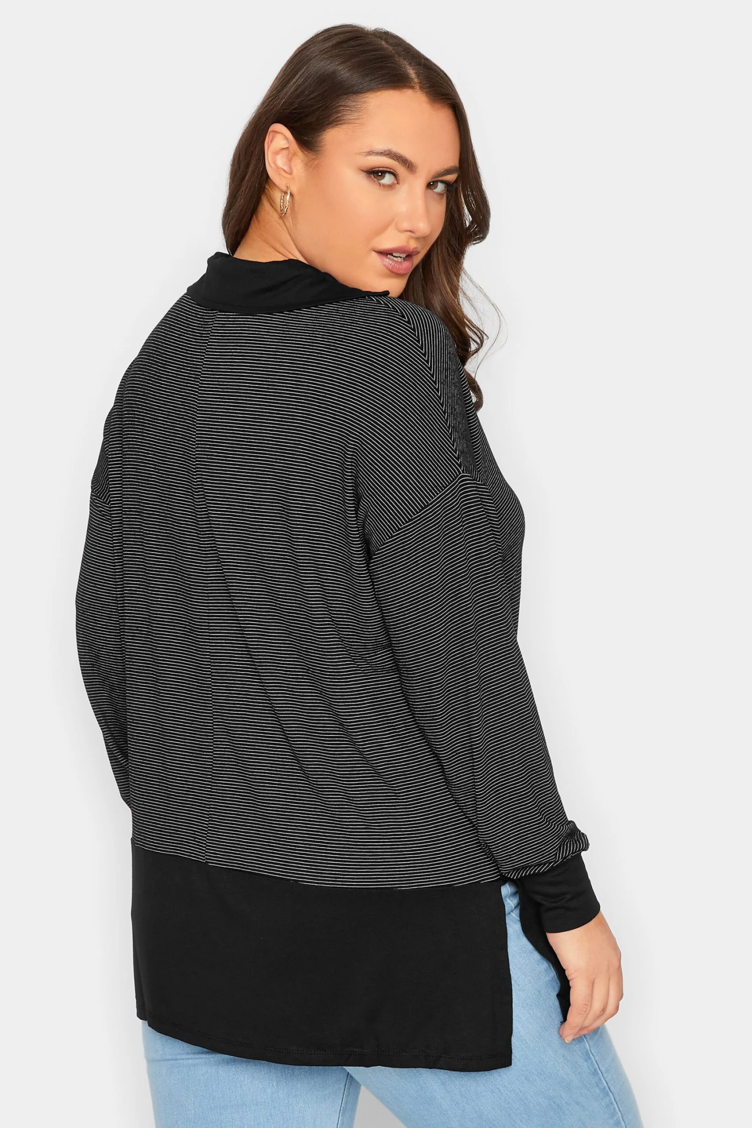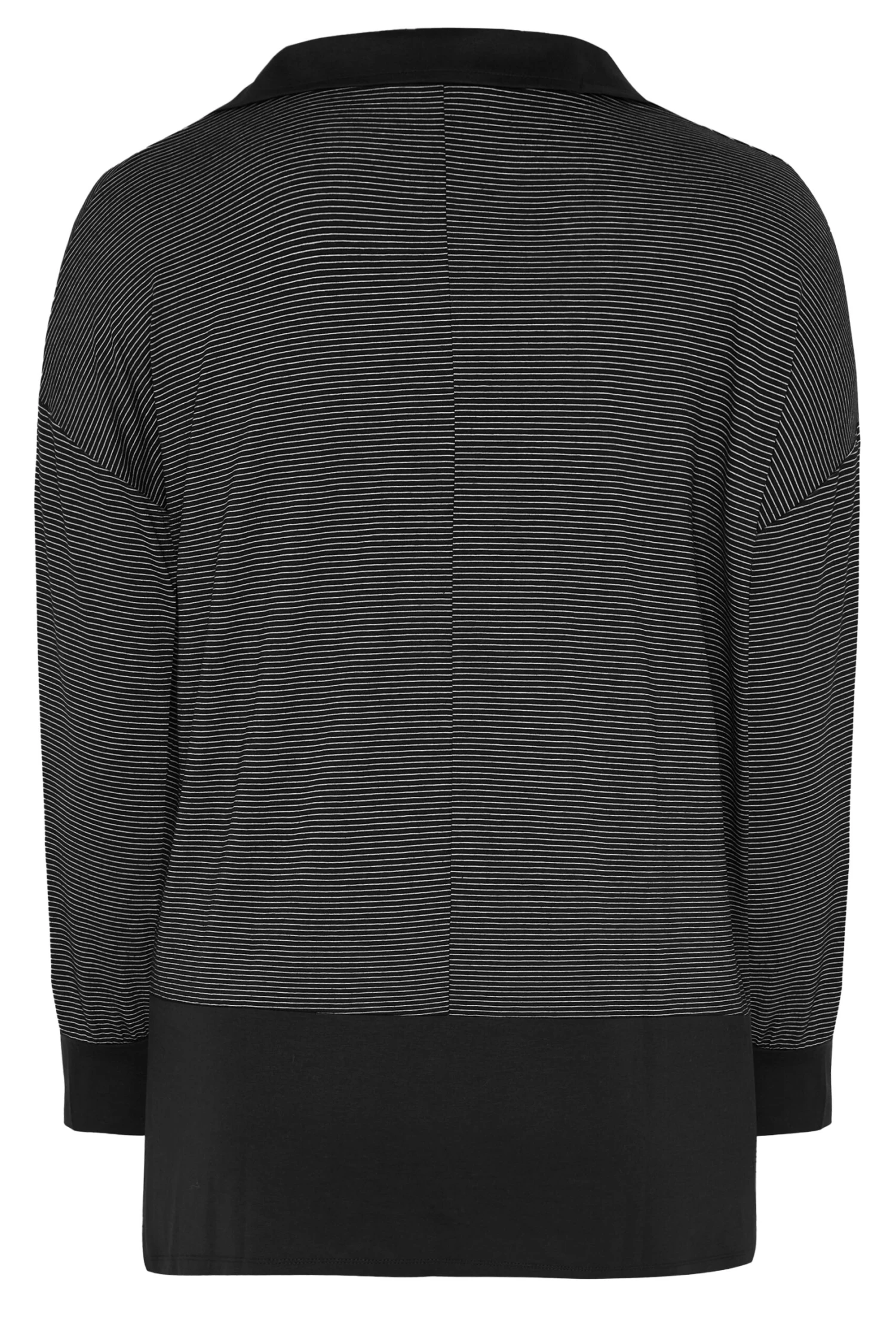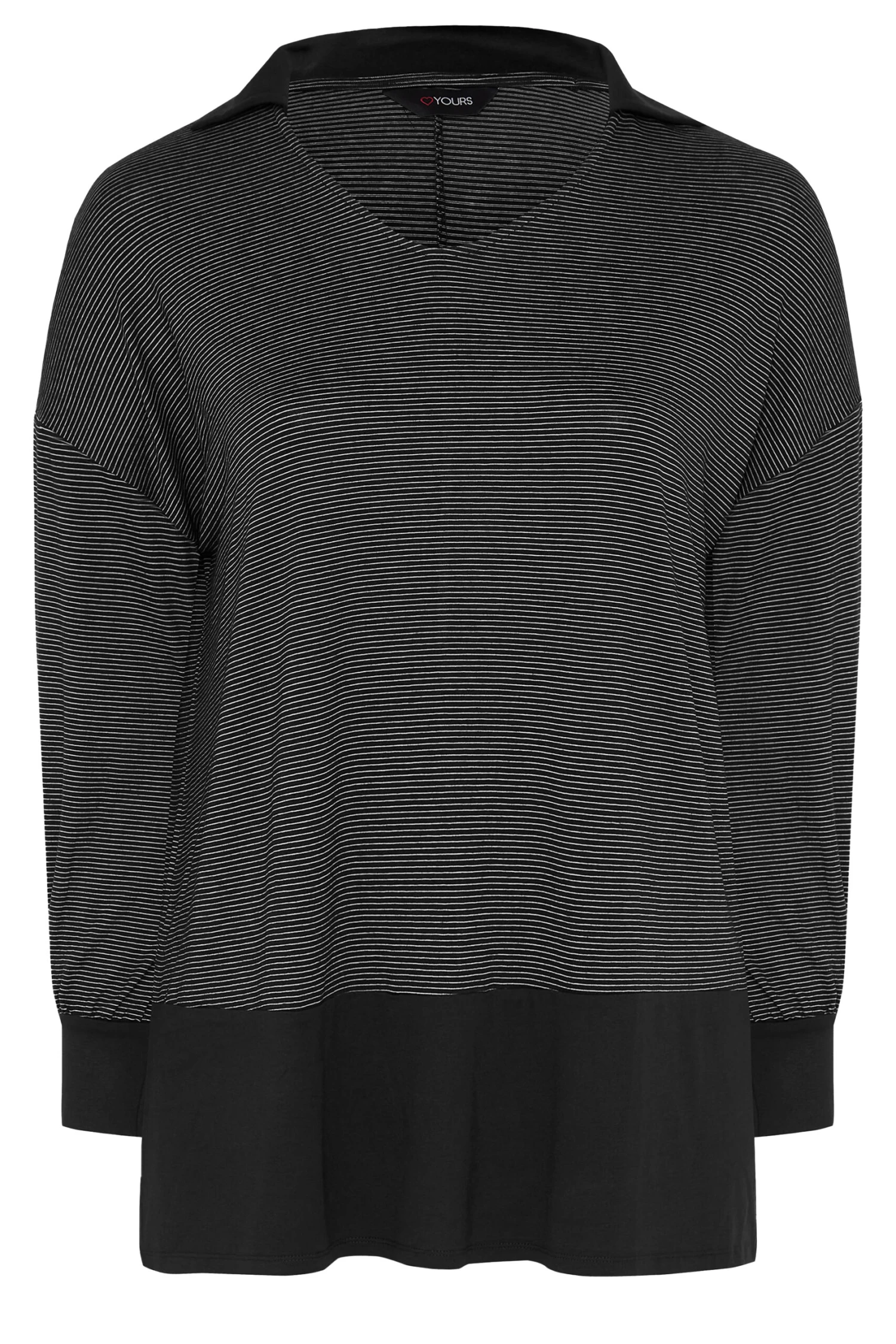 No wardrobe is complete without this staple black top. Made from a comfortable jersey fabric, this polo collar features a frill hem complete with long sleeves. Pair this must-have with your favourite jeans and trainers for the perfect casual look.