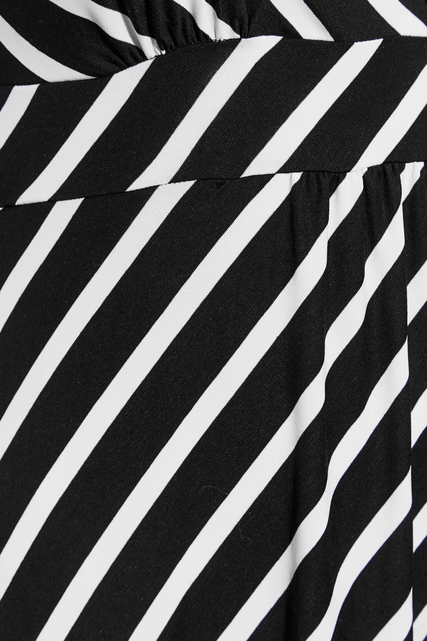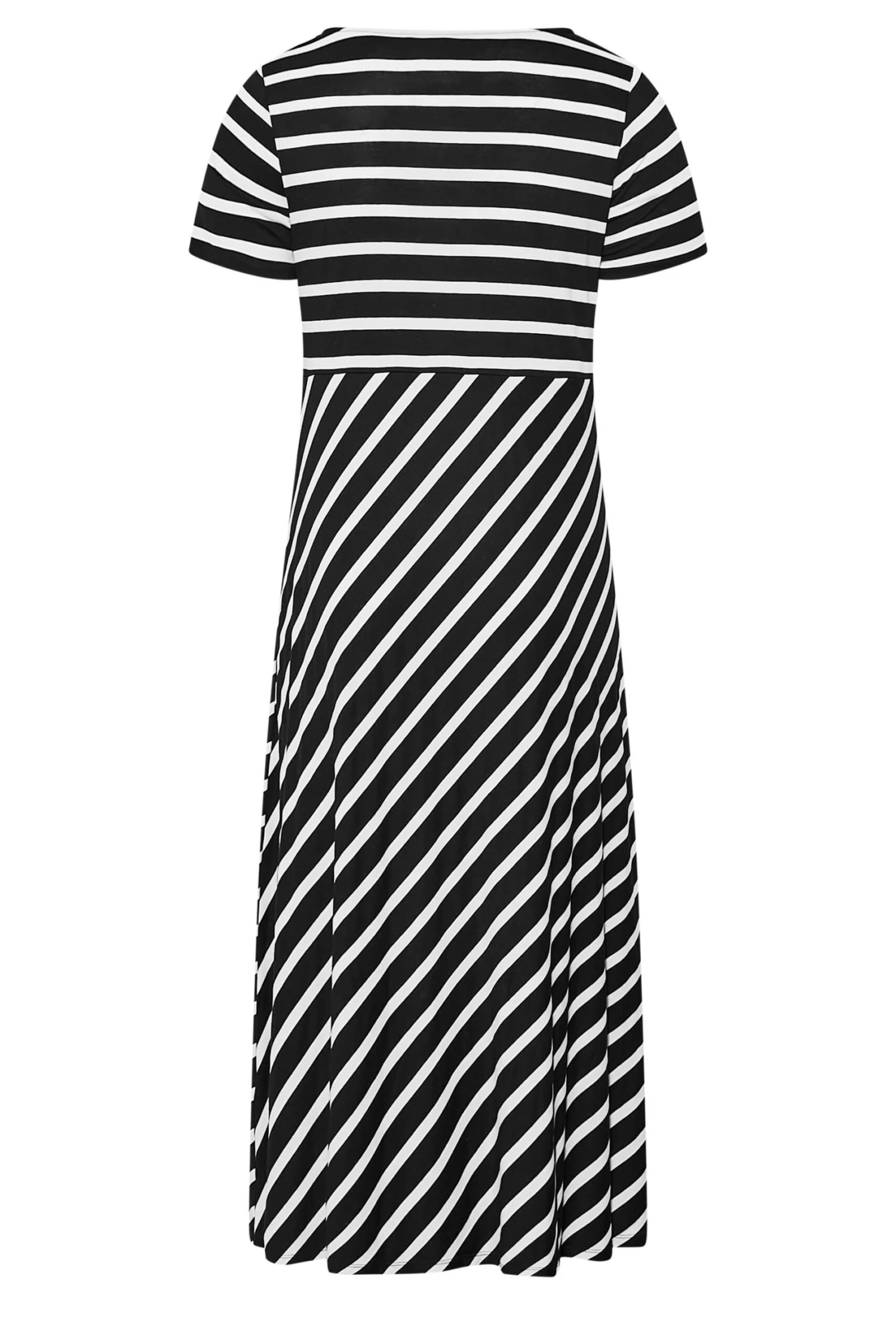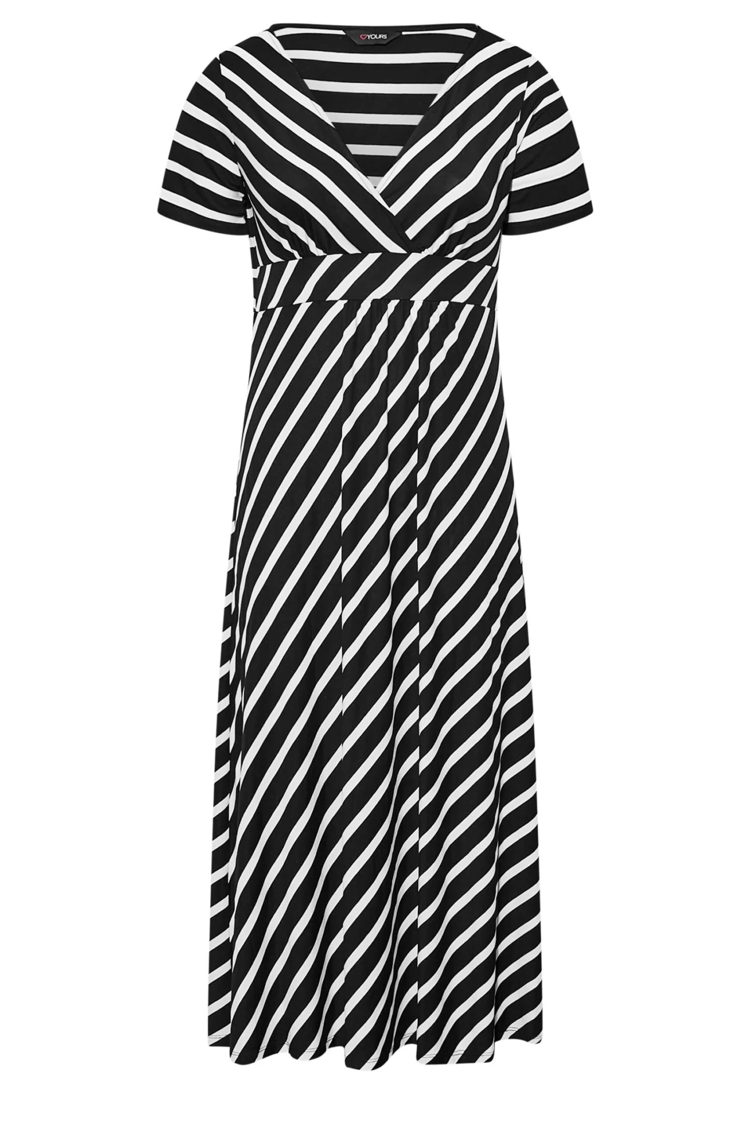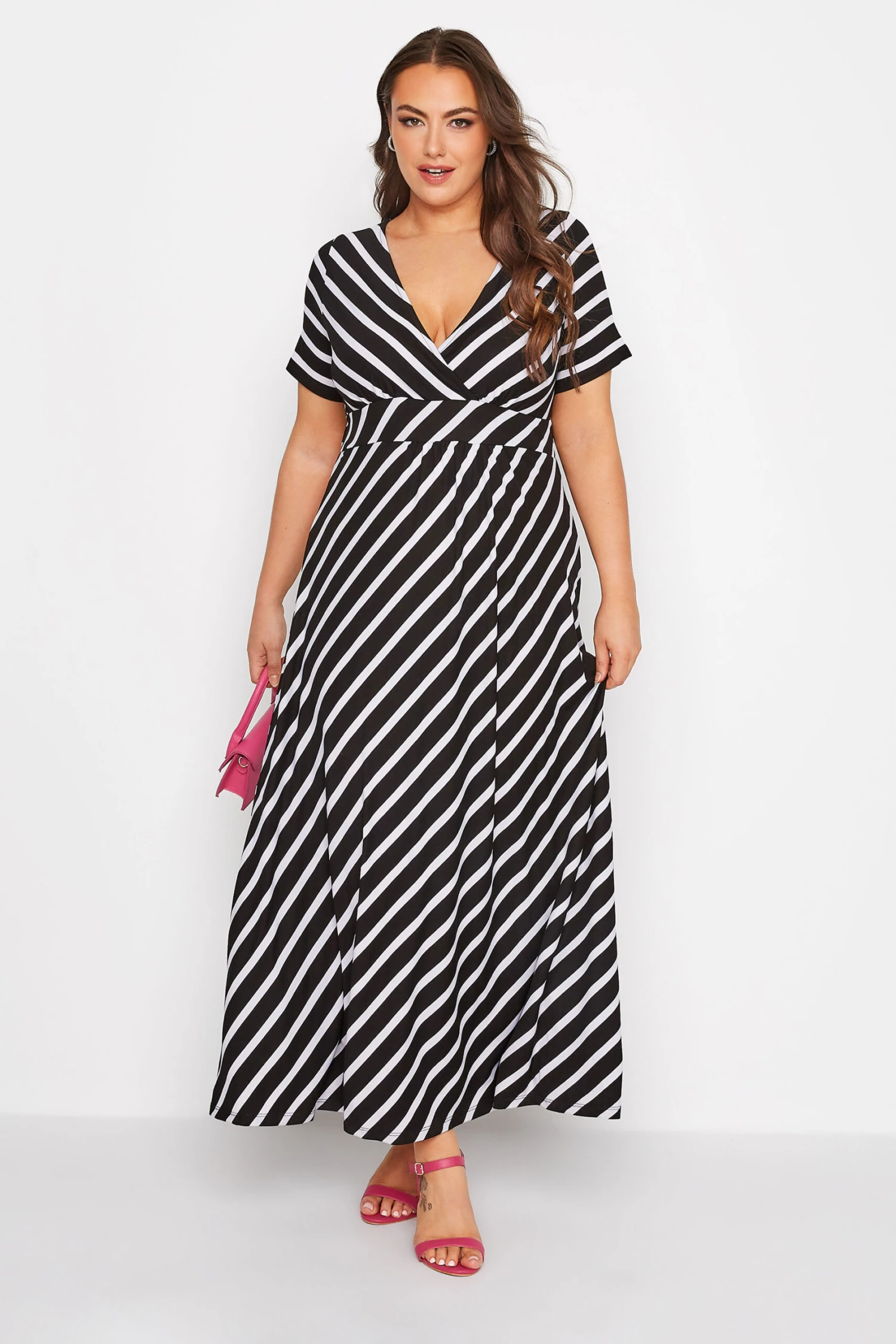 This new-in plus size maxi dress is perfect for your next social occasion. Made from a comfortable jersey fabric, it features a stripe pattern with short sleeves and a wrap front. Team with heels and shoulder bag for an on-trend look that is perfect for your evening plans.