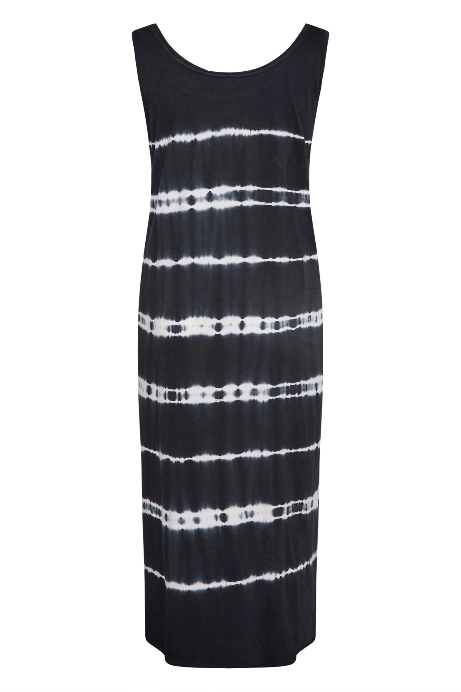 Upgrade your summer wardrobe this season with this must-have trending print. Made from a comfortable jersey fabric, this plus size black maxi dress features a tie dye print with a sleeveless design and scoop neckline. Complete the look with trainers and a denim jacket for a look that is set to fit and flatter your curves.