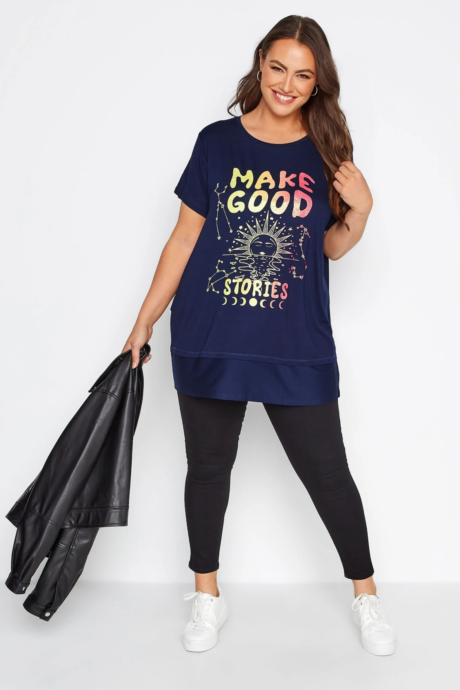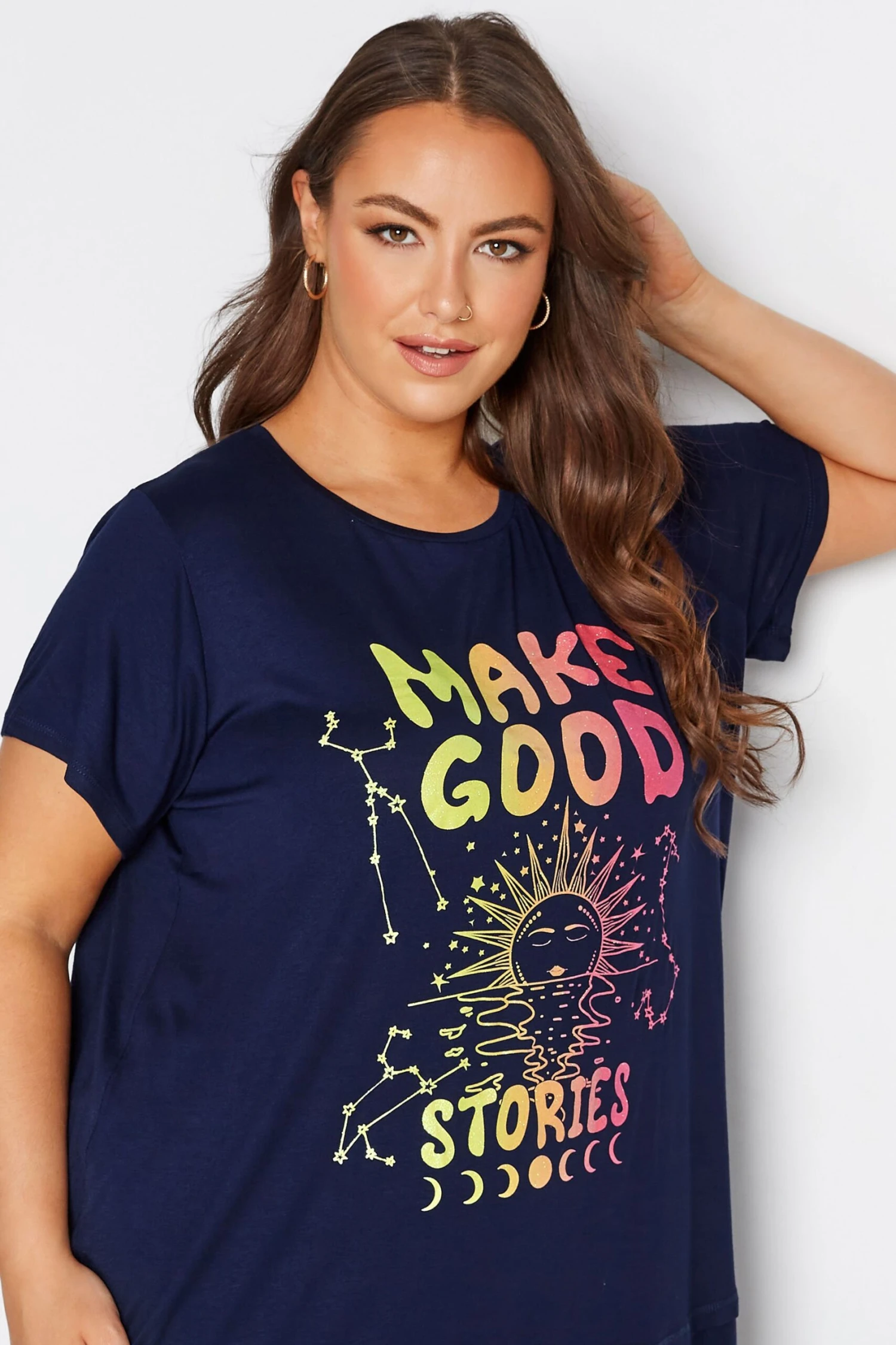 YOURS Curve Navy Blue ‘Make Good Stories’ Slogan T-Shirt
