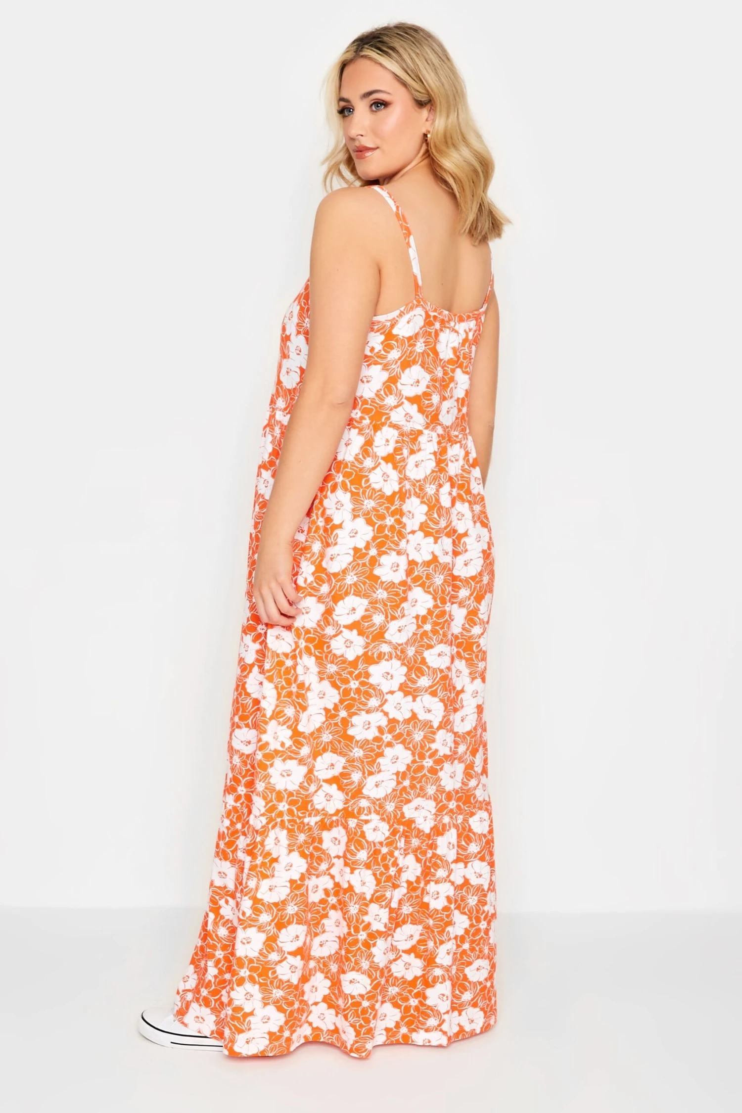 This plus-size sundress is the perfect addition to your weekend wardrobe! Made from a comfortable cotton fabric this dress features a tiered look, a scoop neckline, and a maxi length. Style with sandals and a bag for a look you can wear all summer.