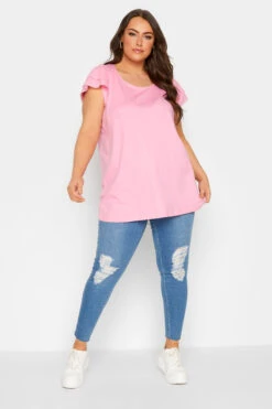 YOURS Curve Pink Frill Sleeve T-Shirt