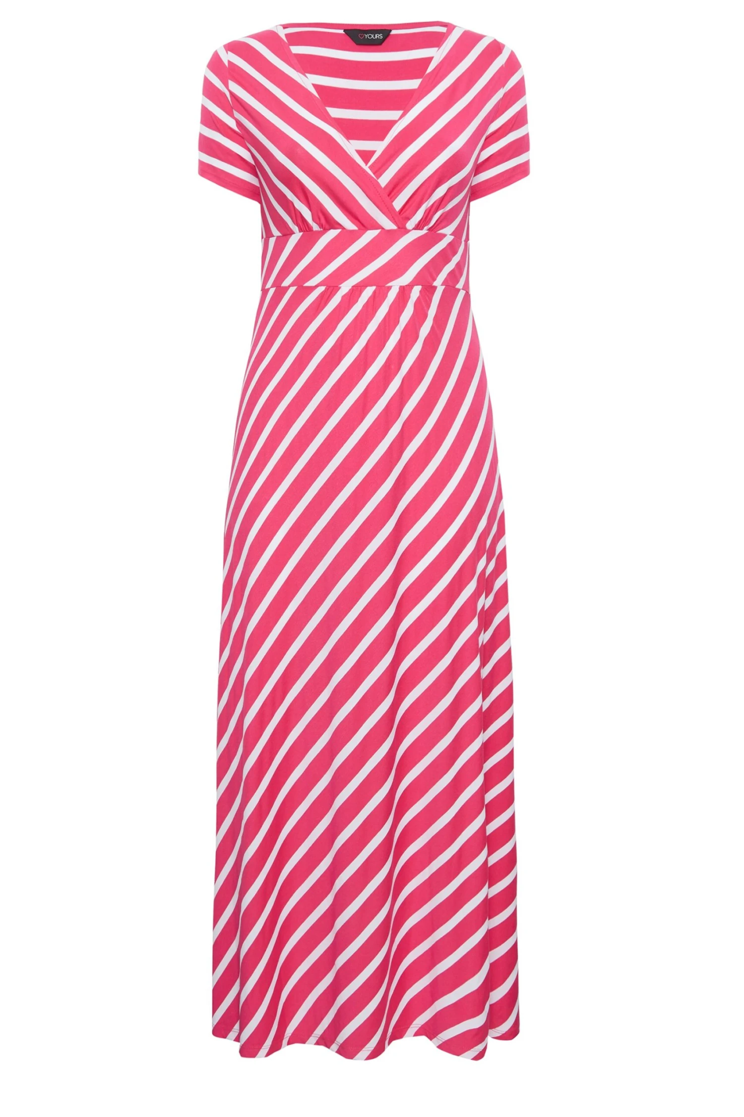 This new-in plus size maxi dress is perfect for your next social occasion. Made from a comfortable jersey fabric, it features a stripe pattern with short sleeves and a wrap front. Team with heels and shoulder bag for an on-trend look that is perfect for your evening plans.