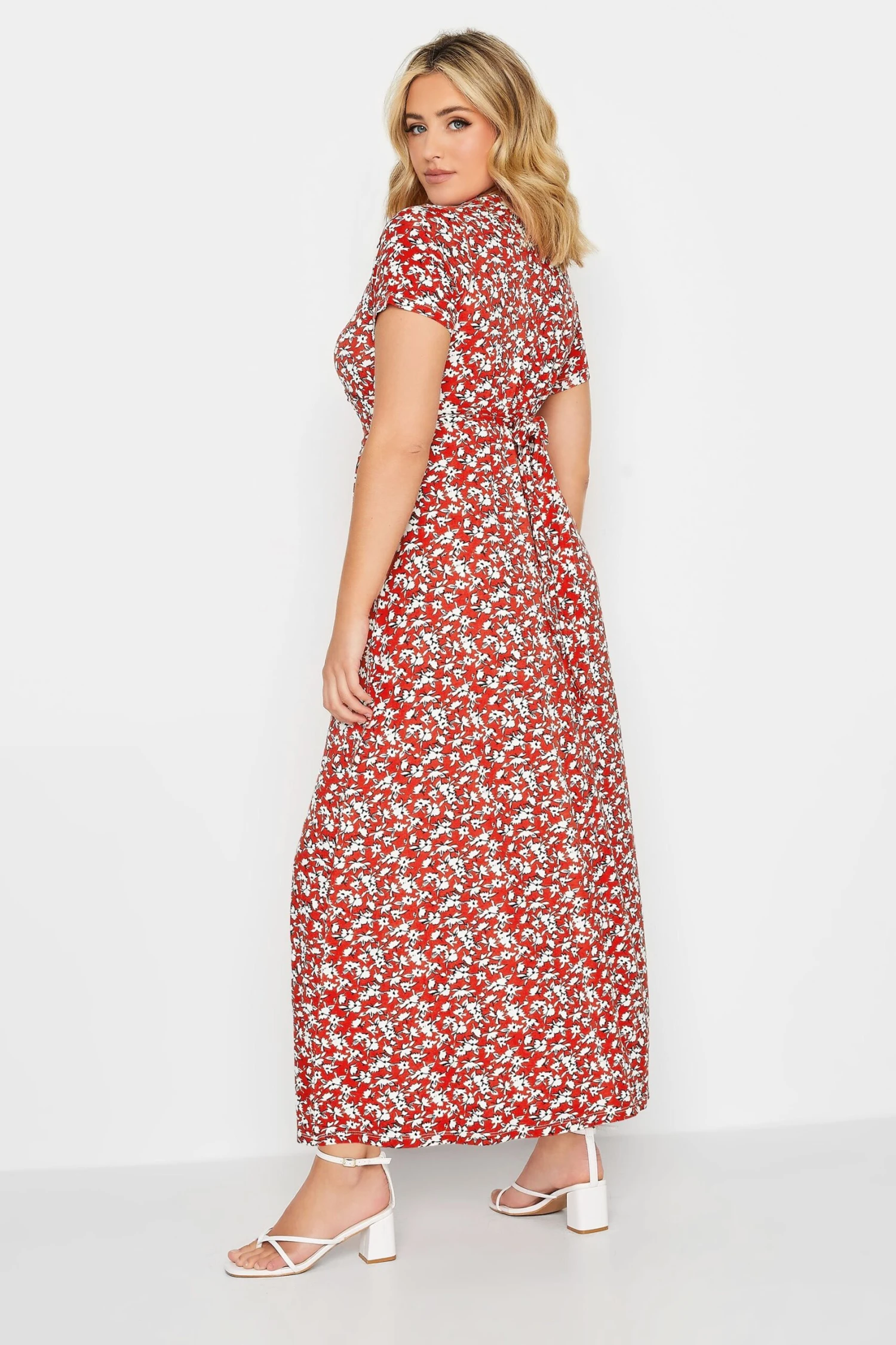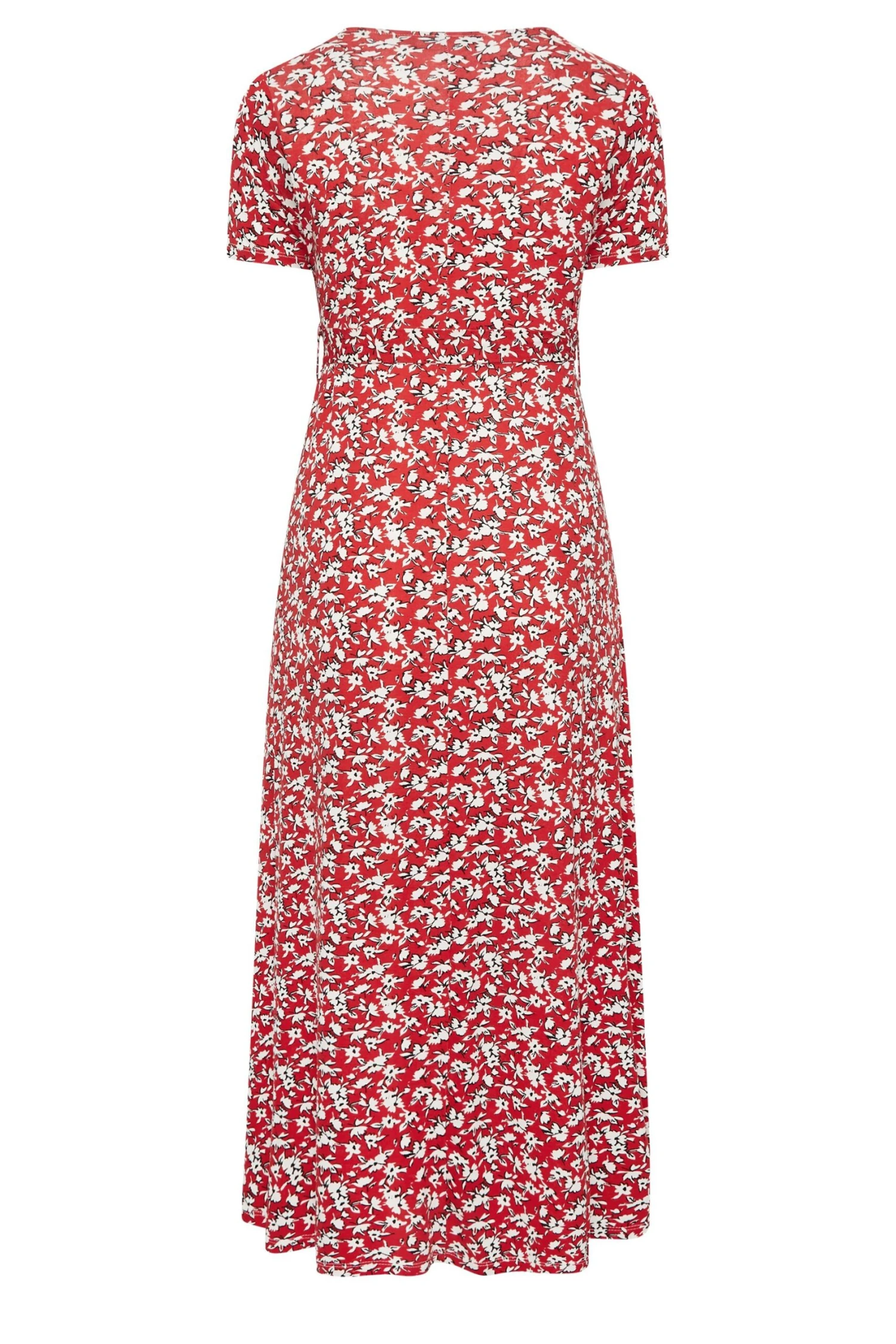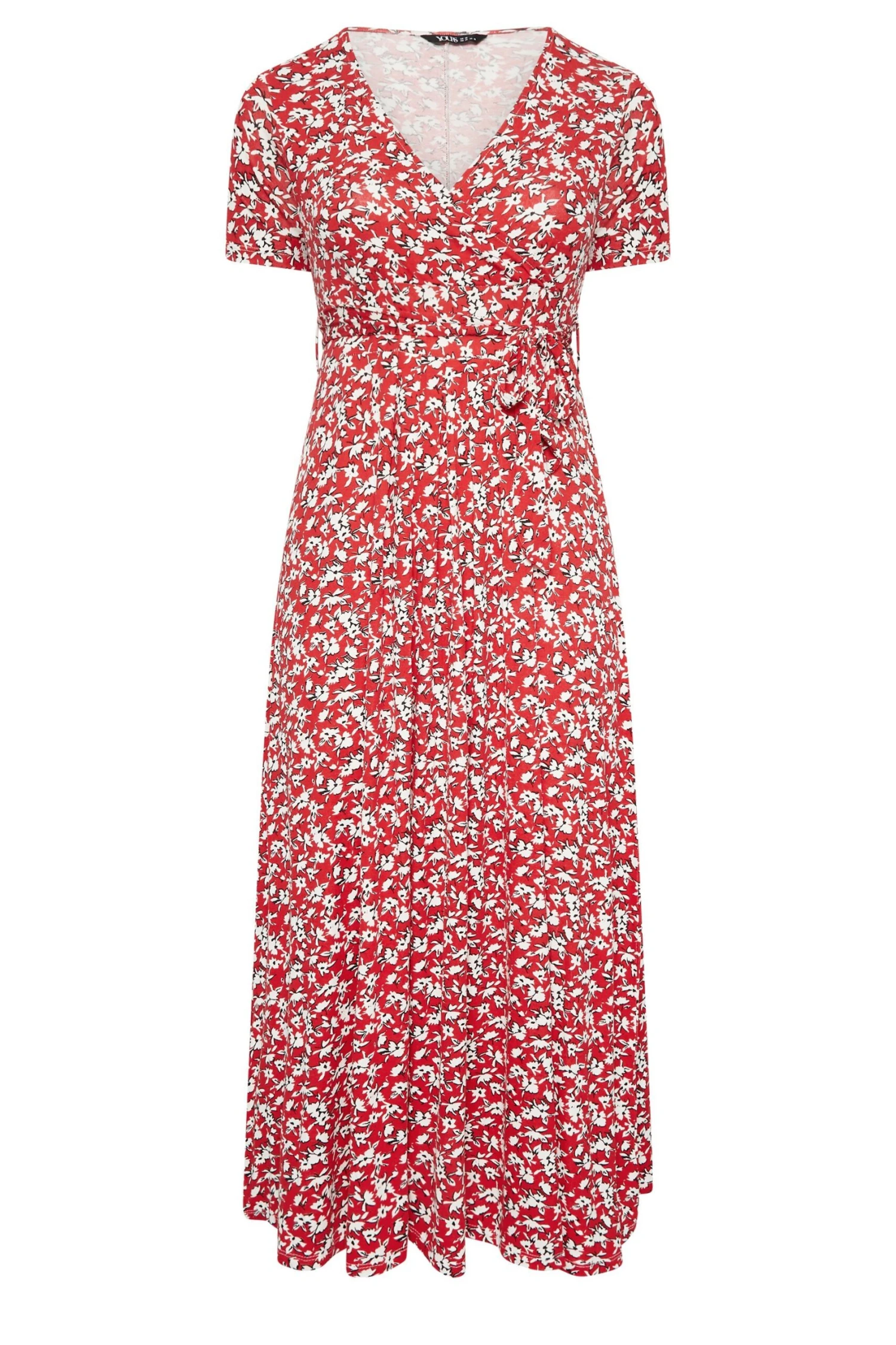 Add floral prints to your wardrobe with this plus-size jersey dress. Made from a comfortable jersey fabric, it features short sleeves, a wrap v-neckline and is complete at a midaxi length with an all-over floral ditsy print. Wear with heels for a must-have summer look.
