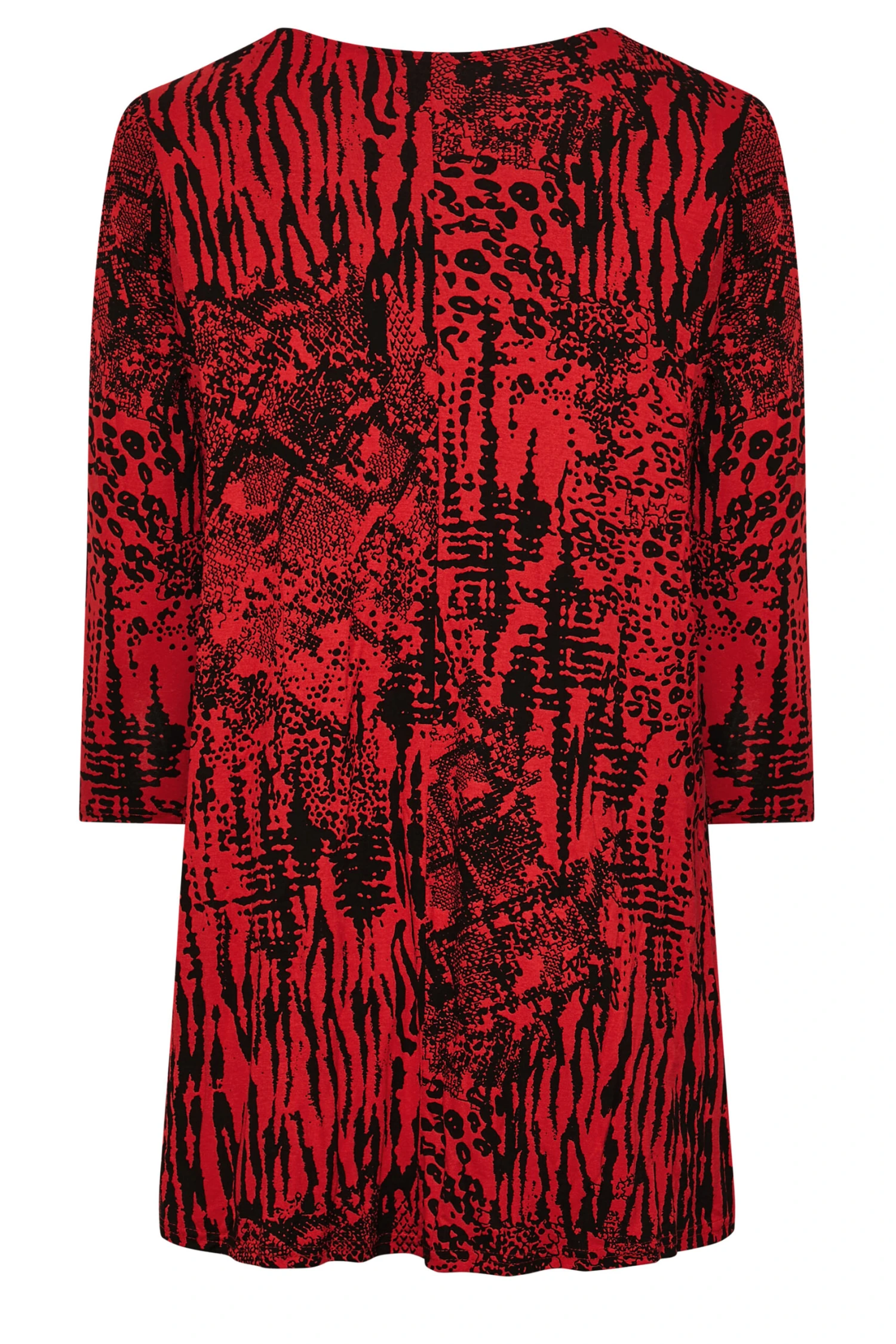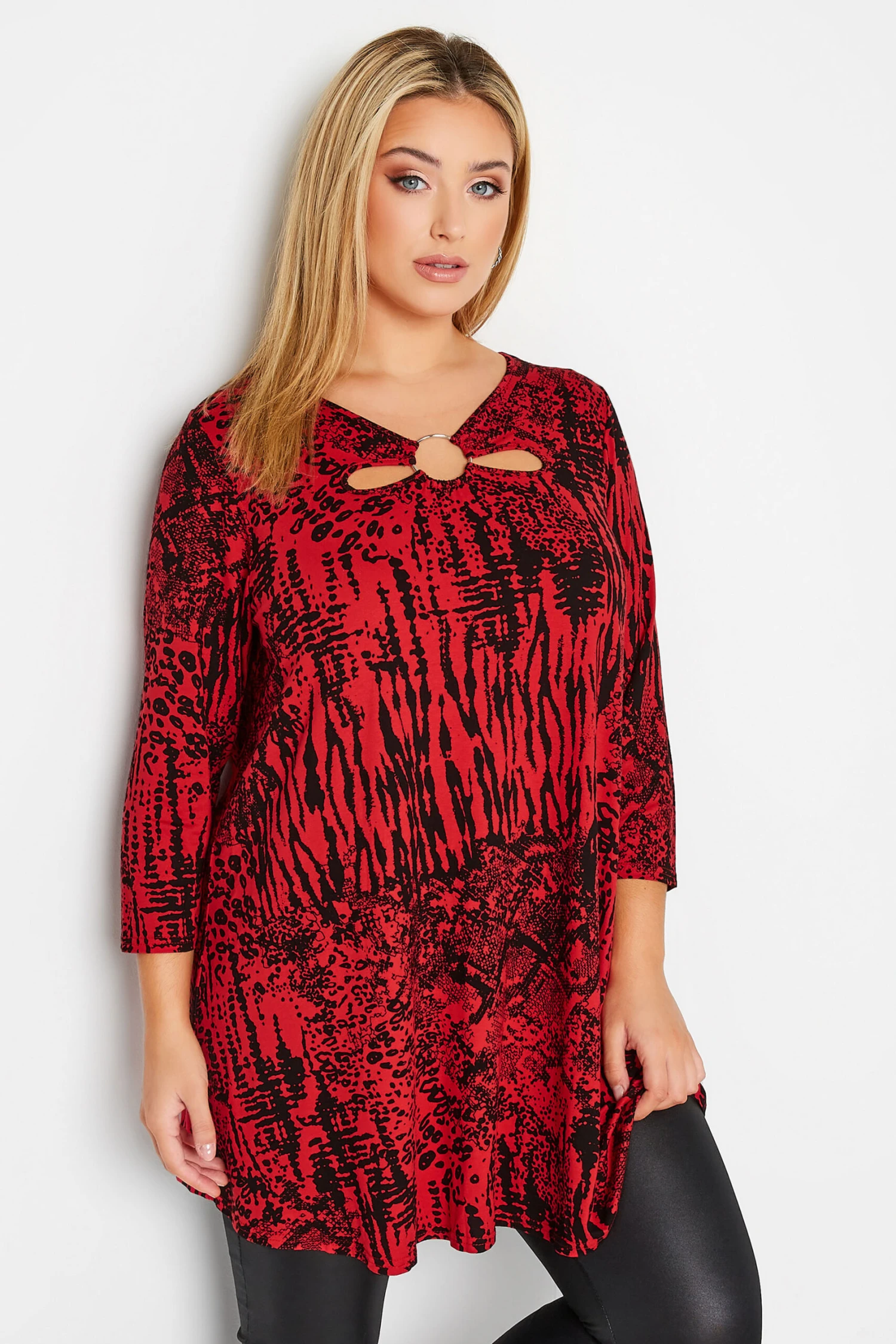 Amp up your collection with this new-in top. Made in a comfortable jersey fabric, it features a v-neckline, 3/4 length sleeves, ring detail, and a mixed animal print completed in a swing style. Partner with leather-look leggings and boots for the ultimate casual outfit.