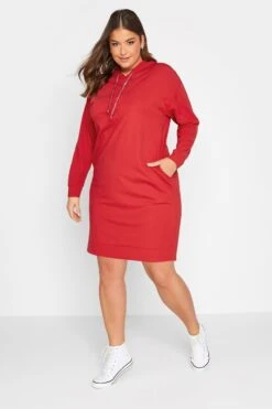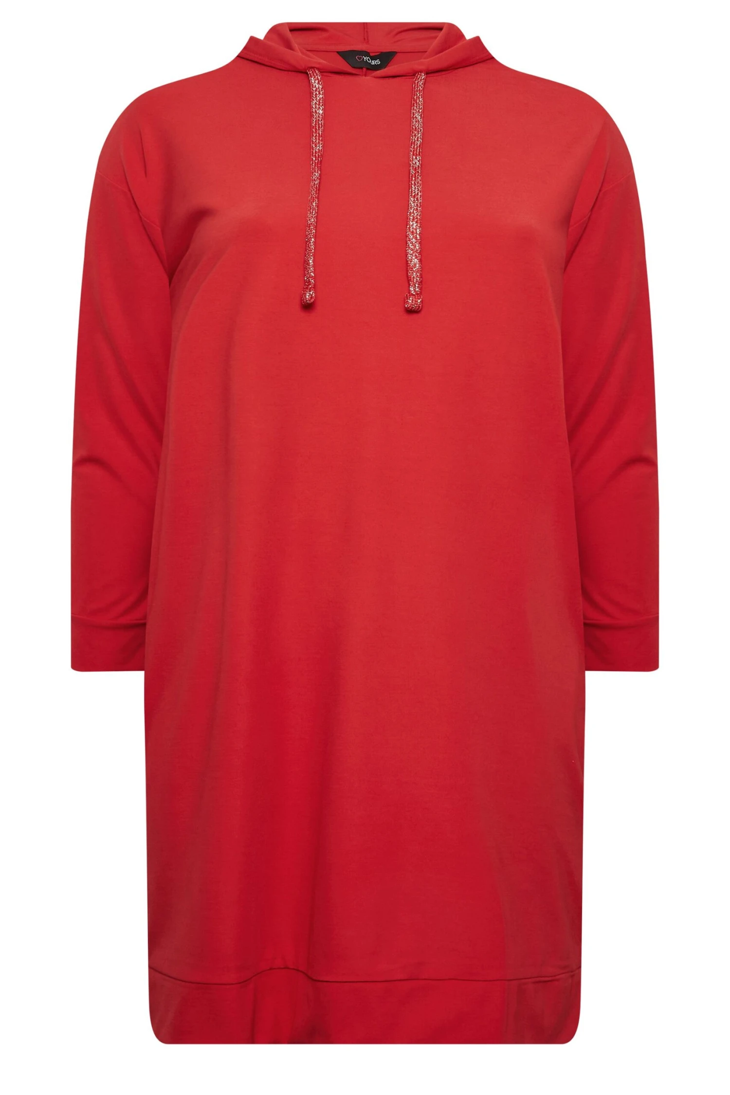 Comfort and style, itβs all you need for the perfect laid-back weekend outfit. This plus-size hoodie dress features long sleeves, a hood with glitter drawstring ties, and two side pockets, complete at a mini length. Pair with cycling shorts and trainers for an off-duty outfit.