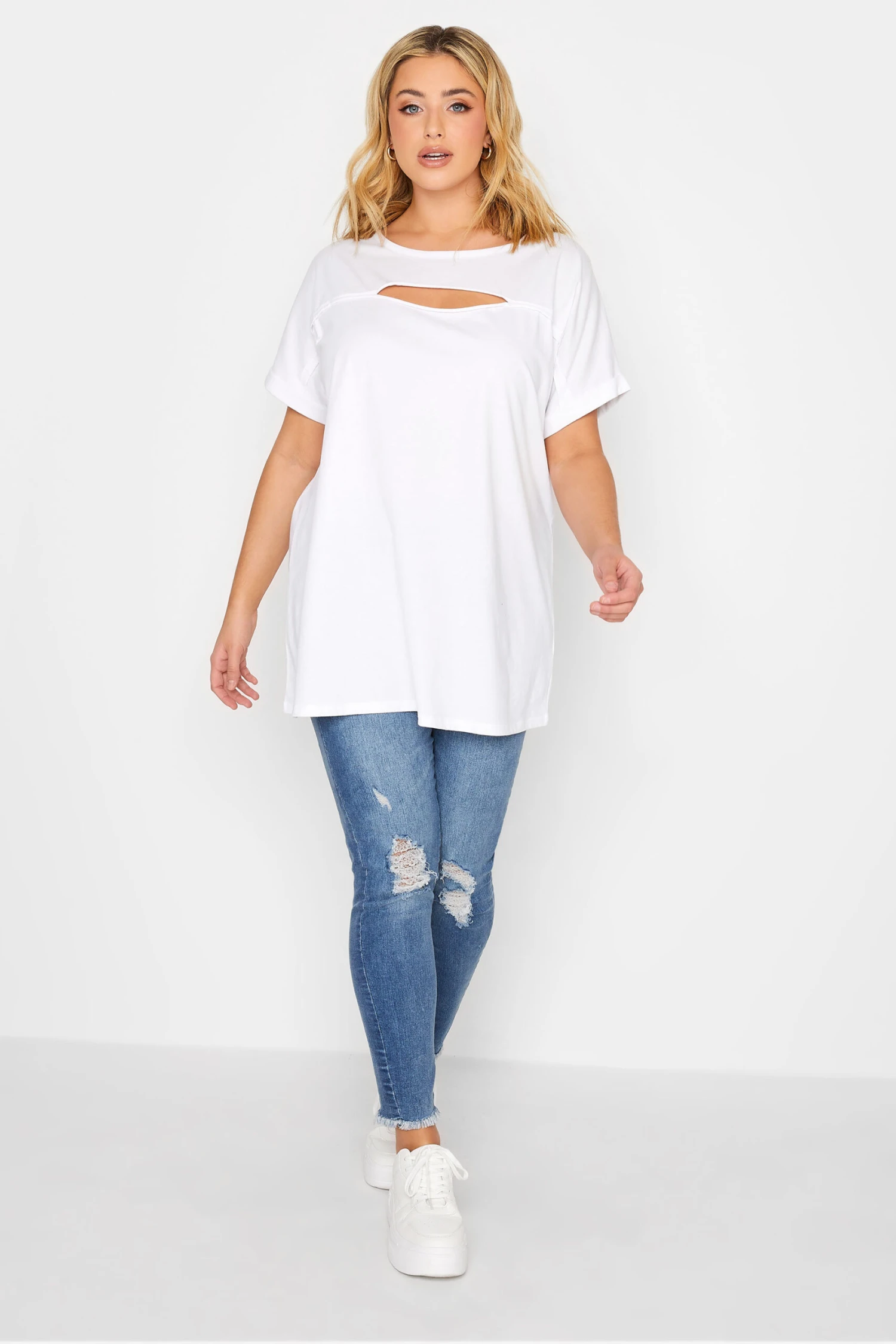 Basics don’t have to be boring. This new-in plus size t-shirt made from 100% cotton features short sleeves, a scoop neckline, and a cut-out detail. Simply style with jeans and trainers for a casual, off-duty outfit.