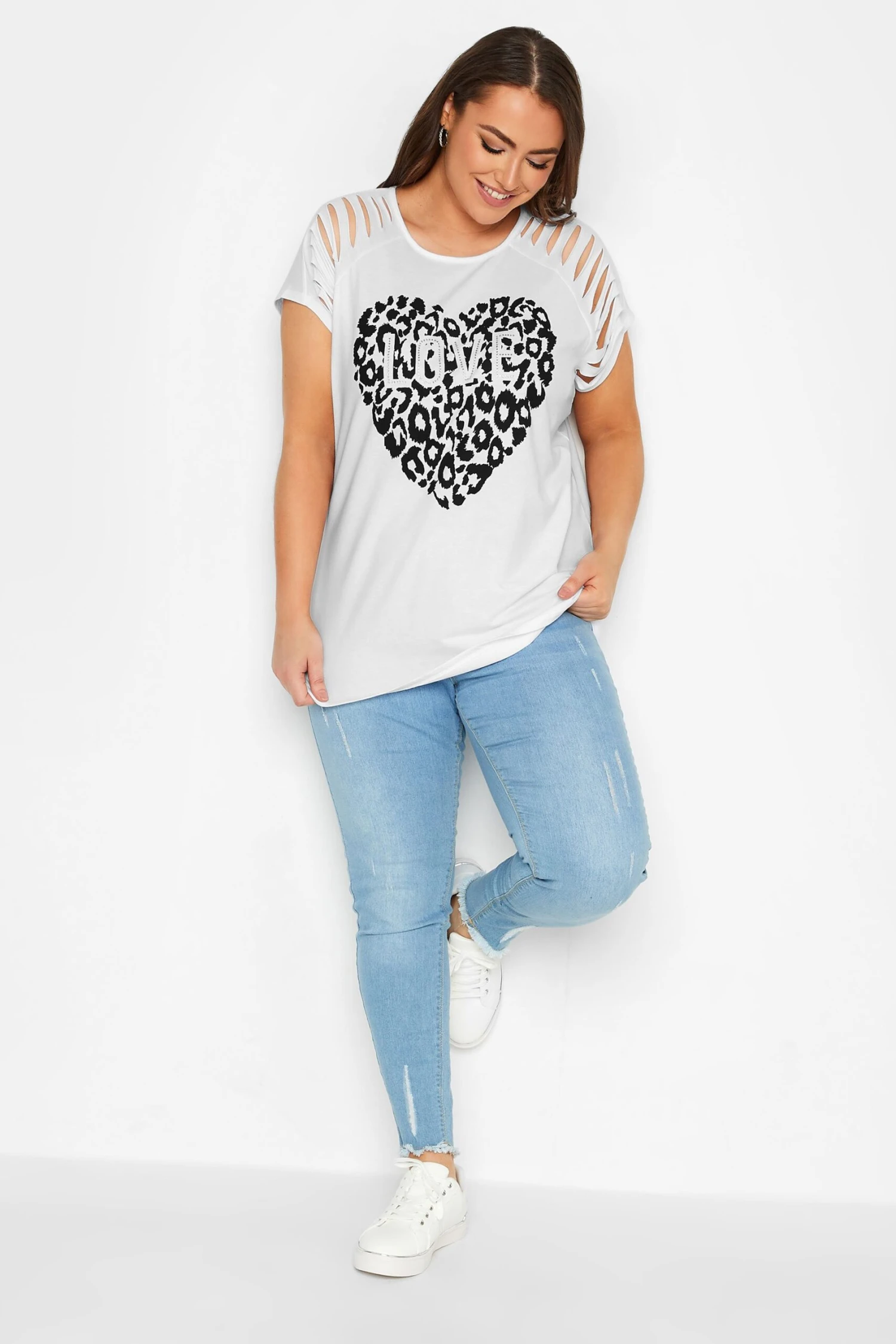 Amp up your casual collection with this distressed t-shirt. Made from a comfortable jersey fabric, it features a leopard print heart with short sleeves and a scoop neckline. Team with jeans and trainers for a casual look that you’ll want to wear on repeat.