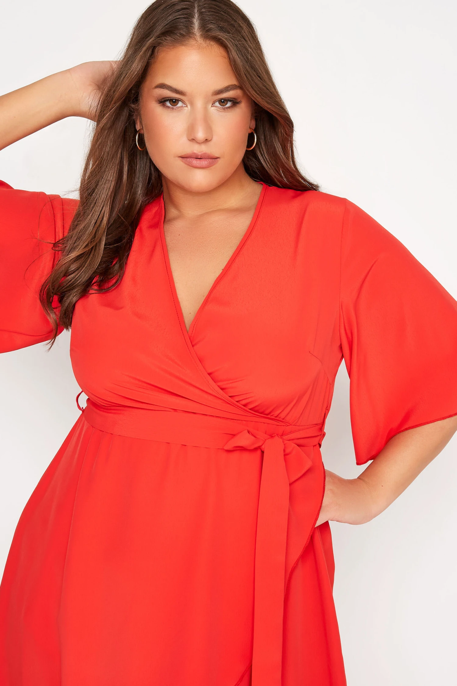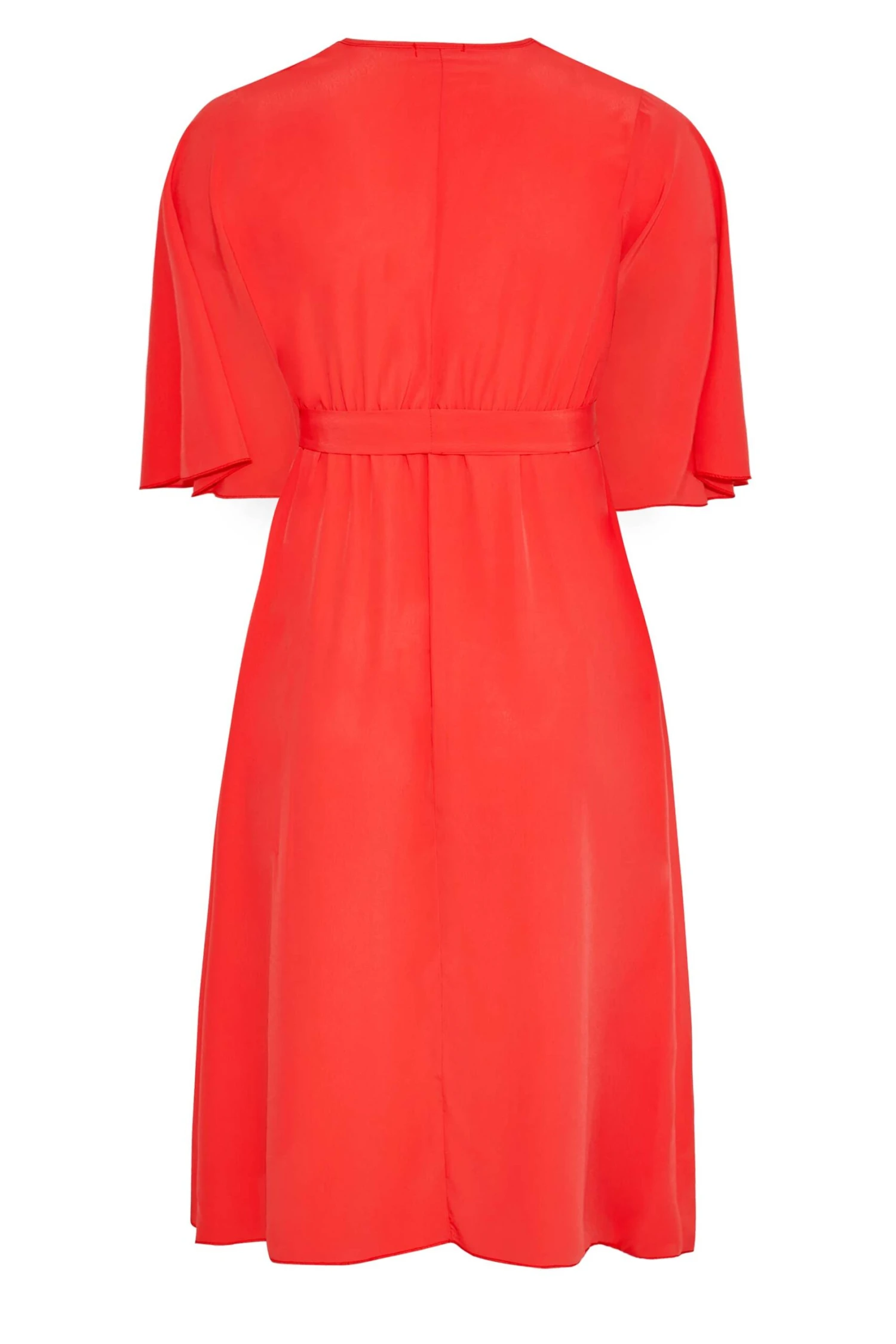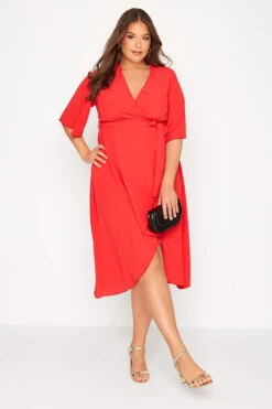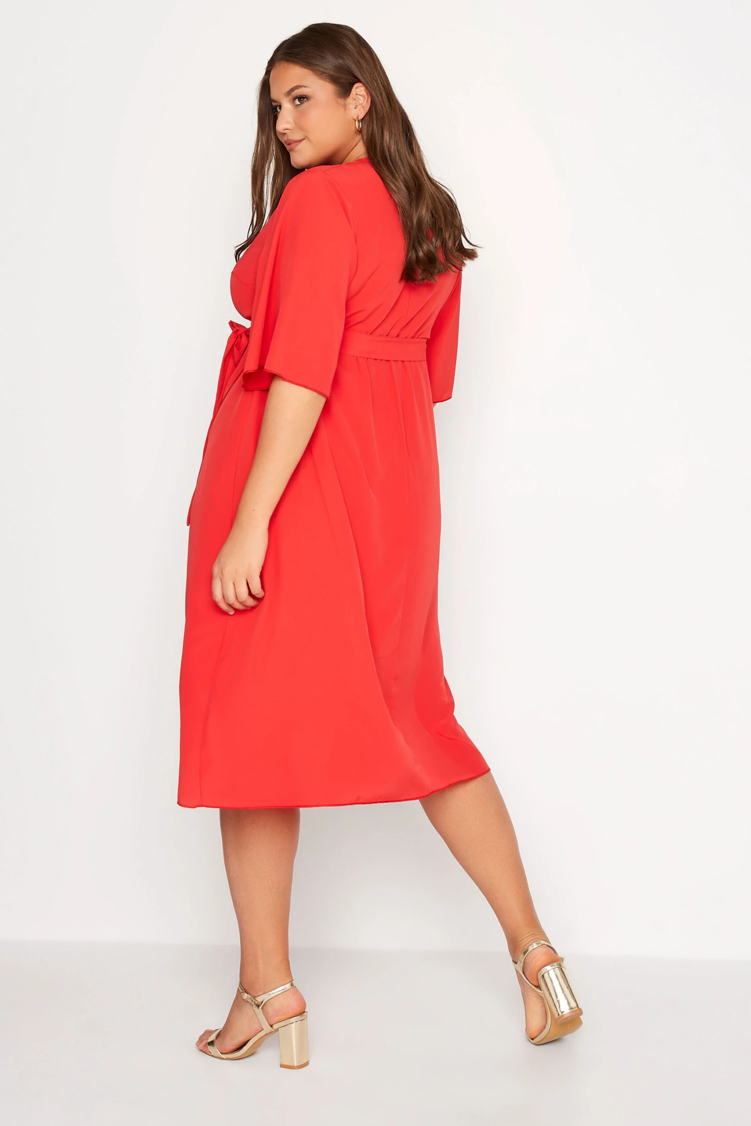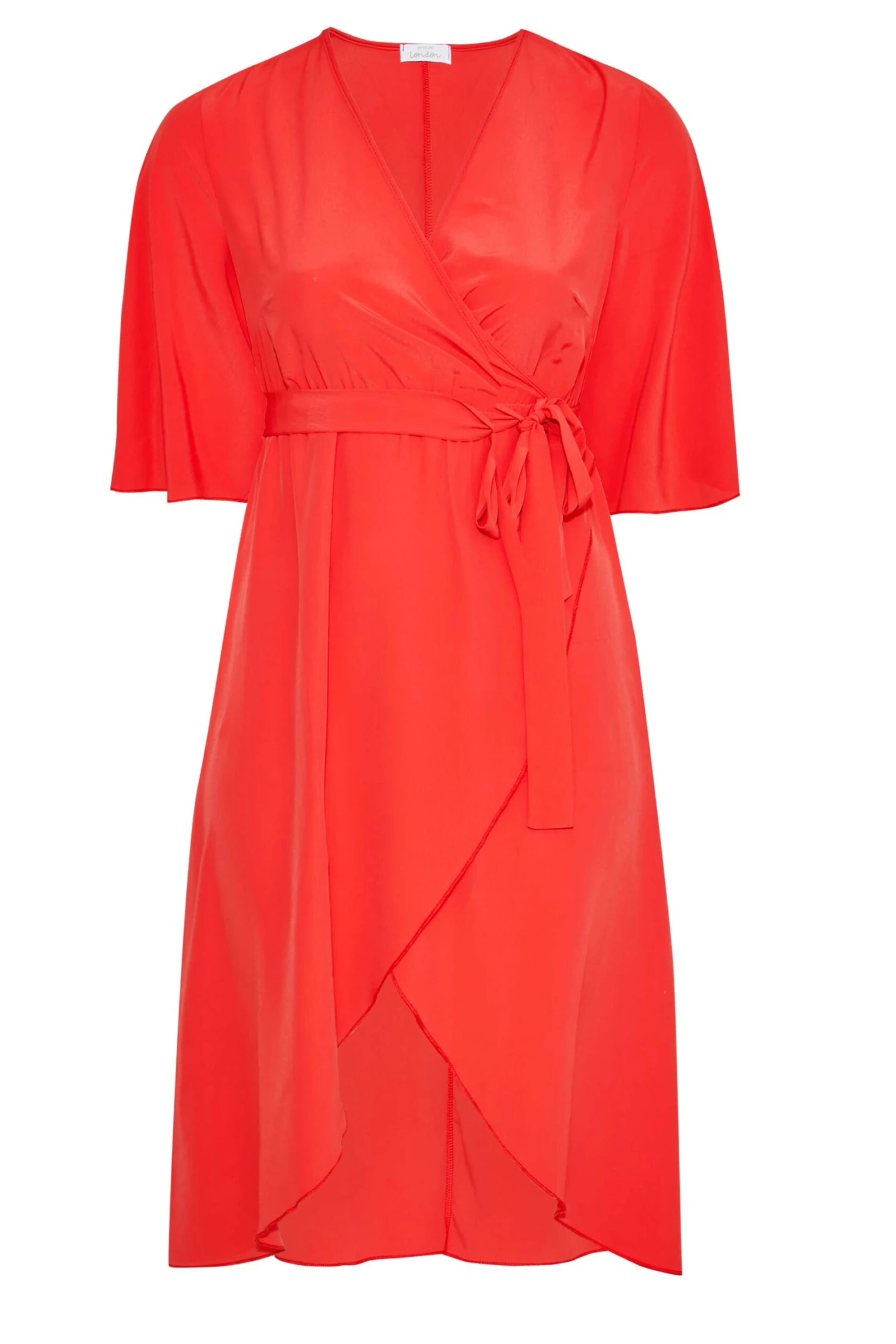 Brighten up your occasionwear with this Yours London plus size wedding guest dress. Featuring a midi length and flattering wrap style, it is finished with a v-neckline and tie waist belt to fit and flatter your curves. Style with contrasting heels and shoulder bag for an on-trend, eye-catching look.