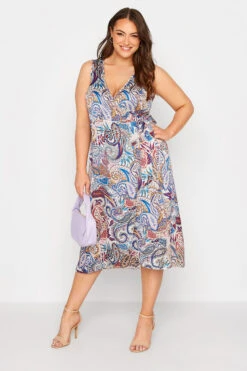 Refresh your occasion wear collection with this new-in satin wrap dress from Yours London. Made from a soft woven fabric, it features a paisley print, v-neckline and an adjustable tie fastening to fit and flatter your curves. Pair with heels and a shoulder bag for effortless elegance.