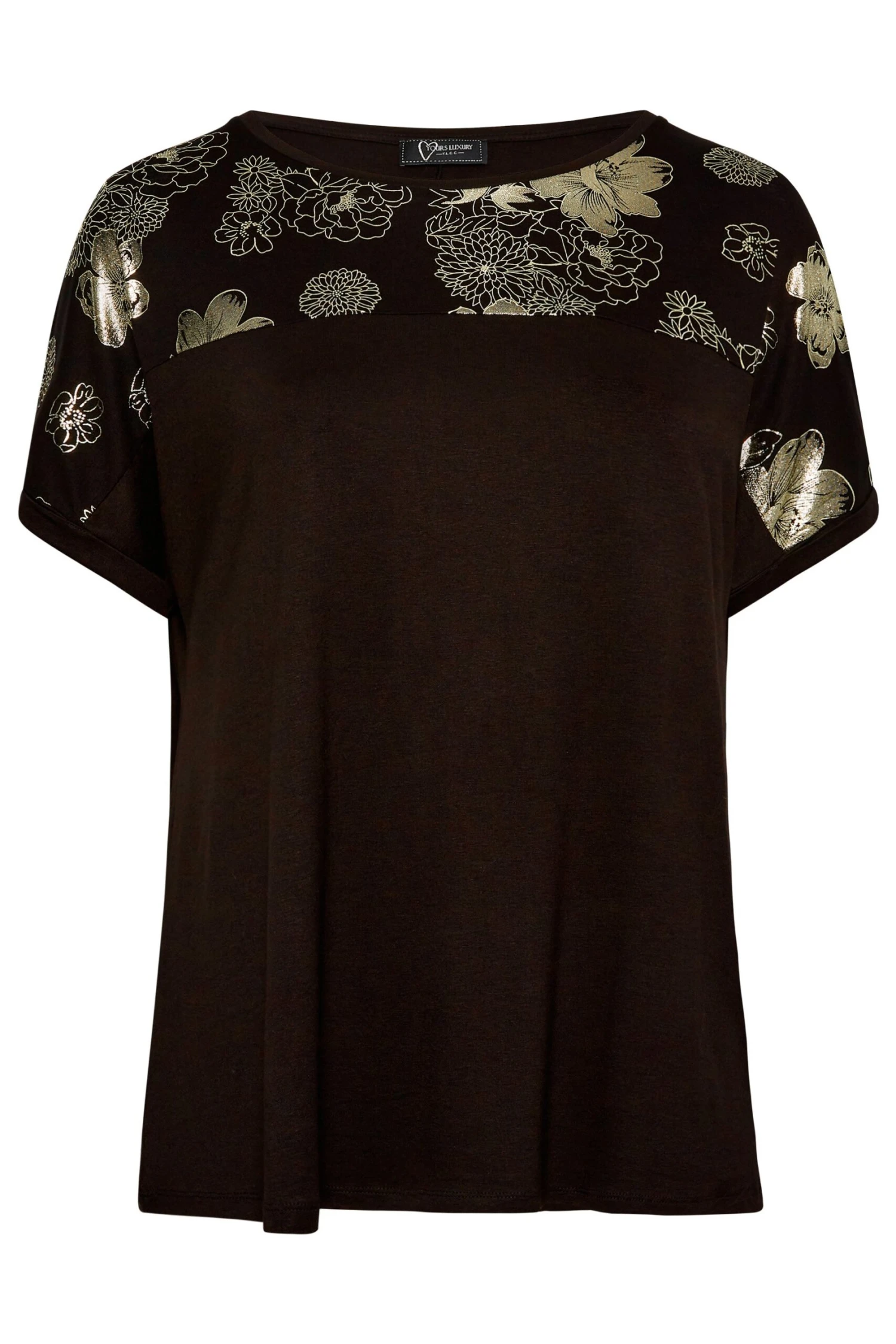Introduce luxury into your everyday style. Made from a comfortable jersey fabric, this top features, a v-neckline, short sleeves, and a panel foil floral print. Wear with jeans and heels for a smart casual outfit.